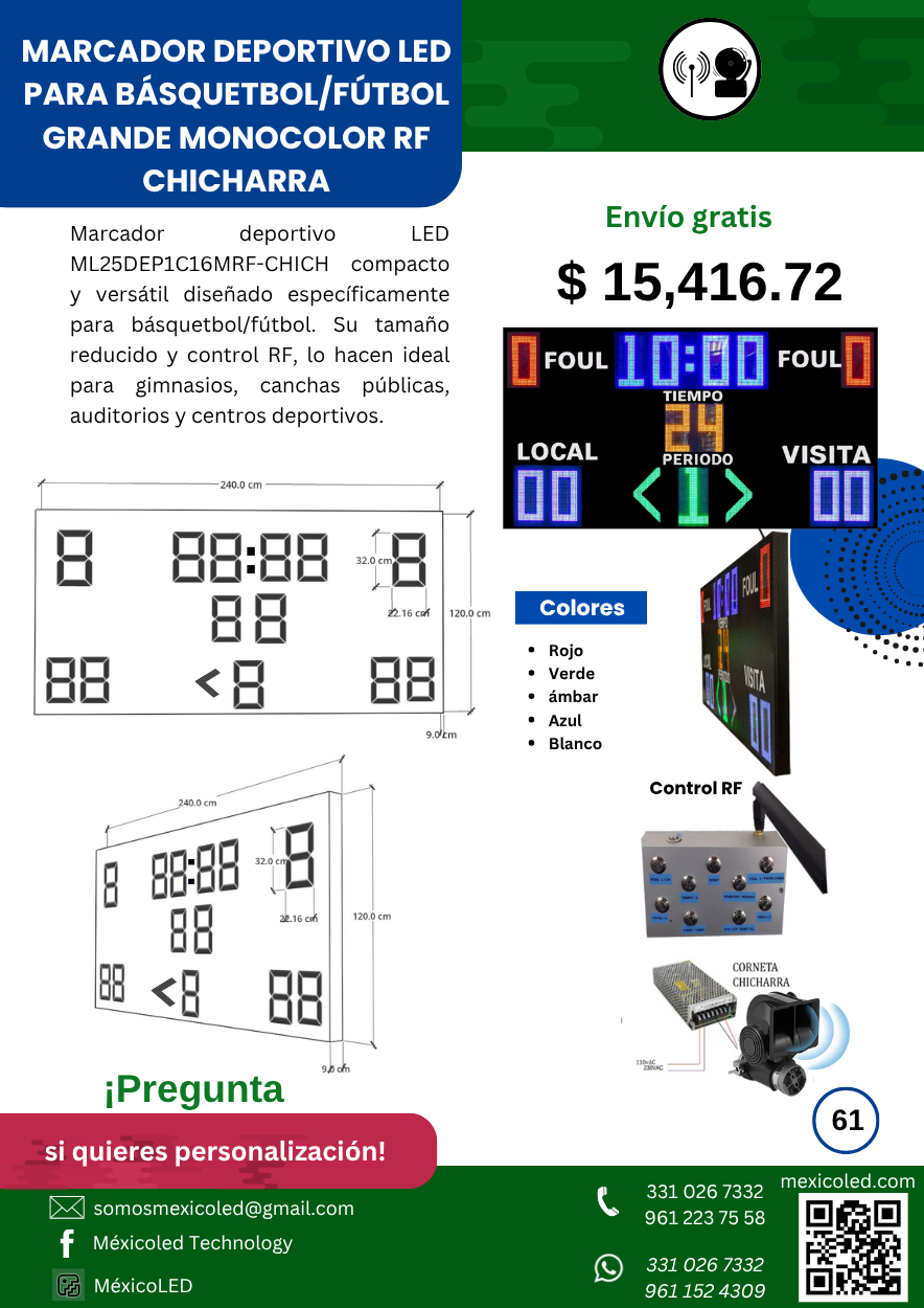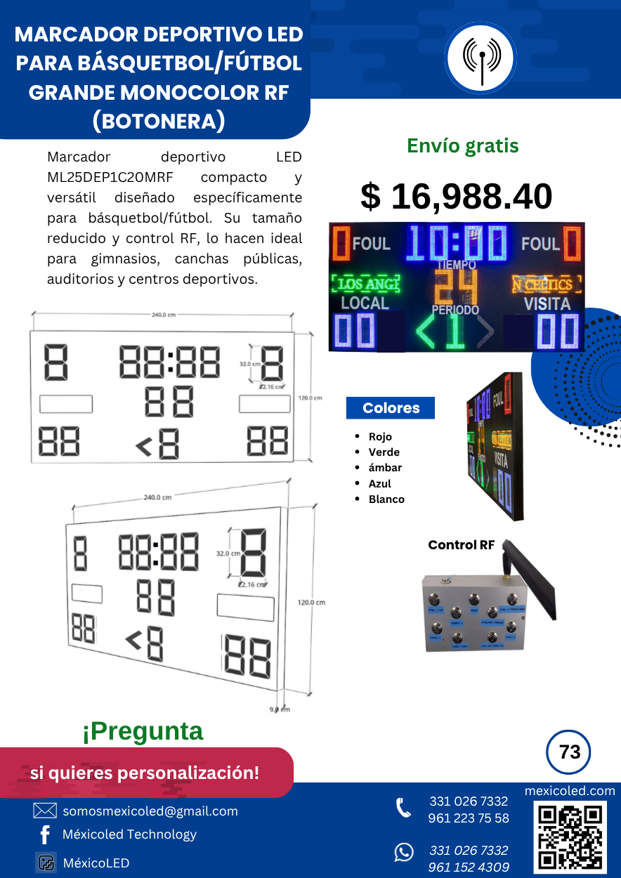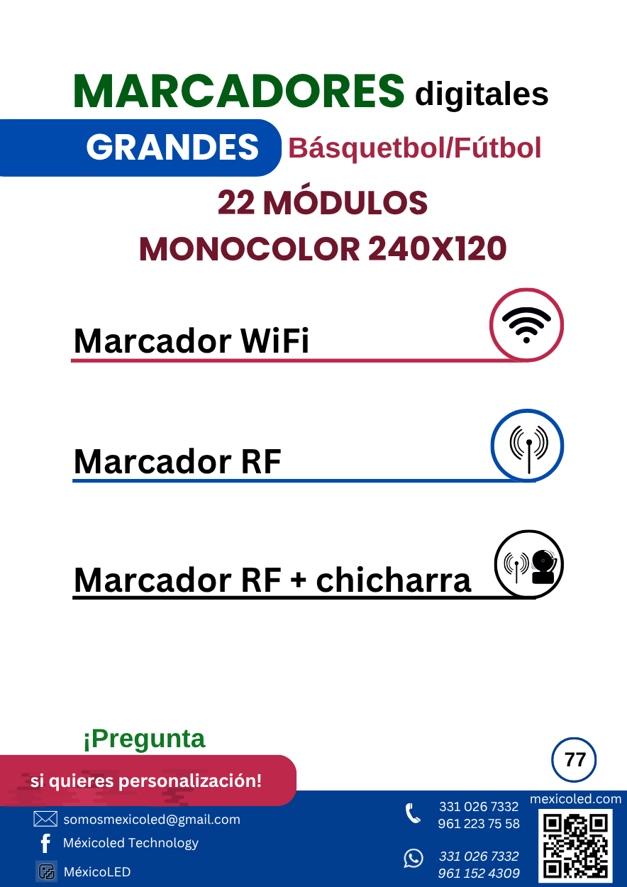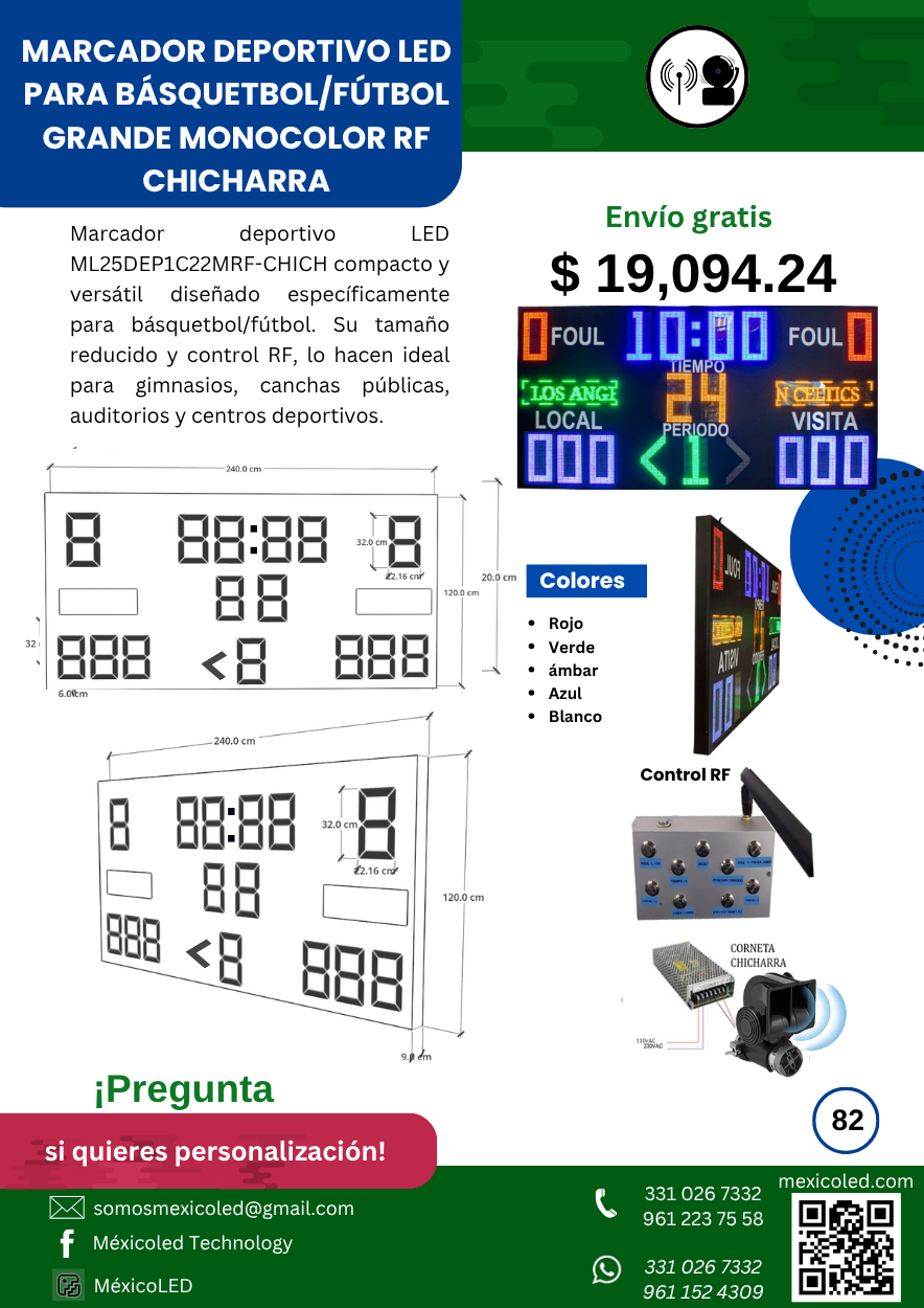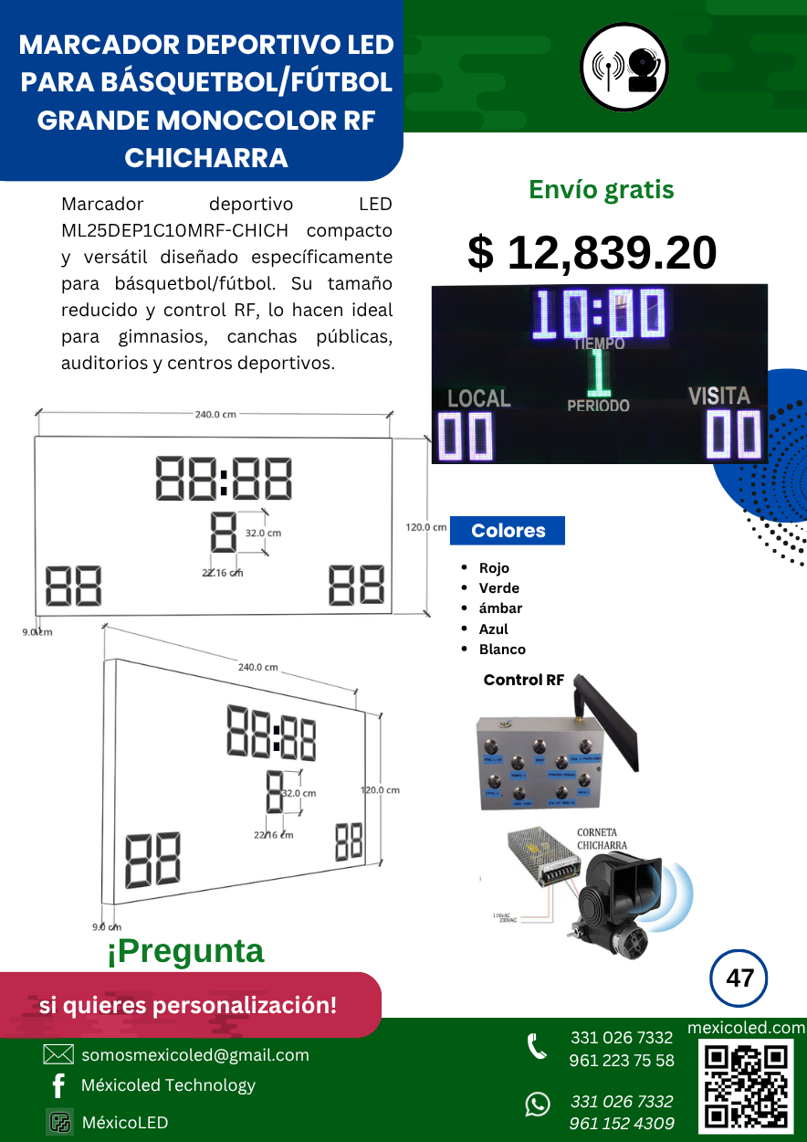Diseñado para canchas grandes, con excelente visibilidad y dígitos de alto brillo.
