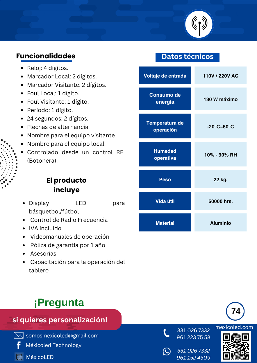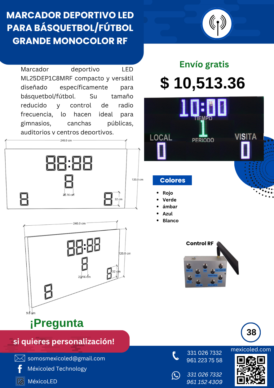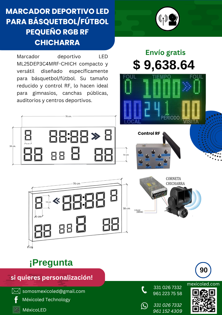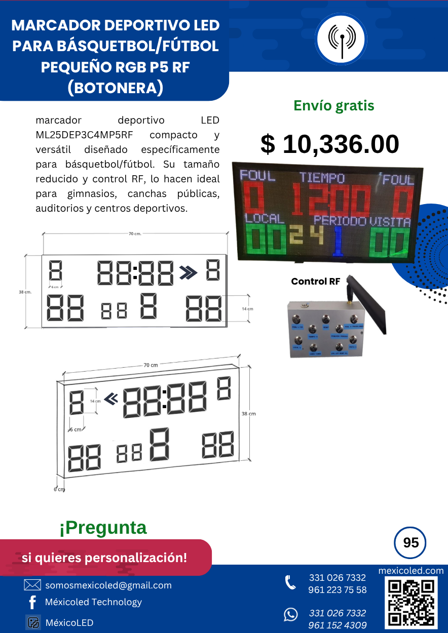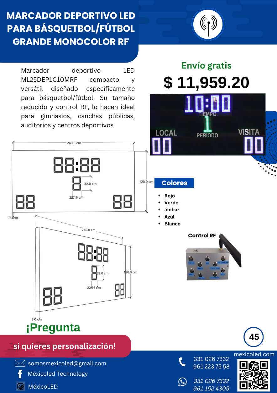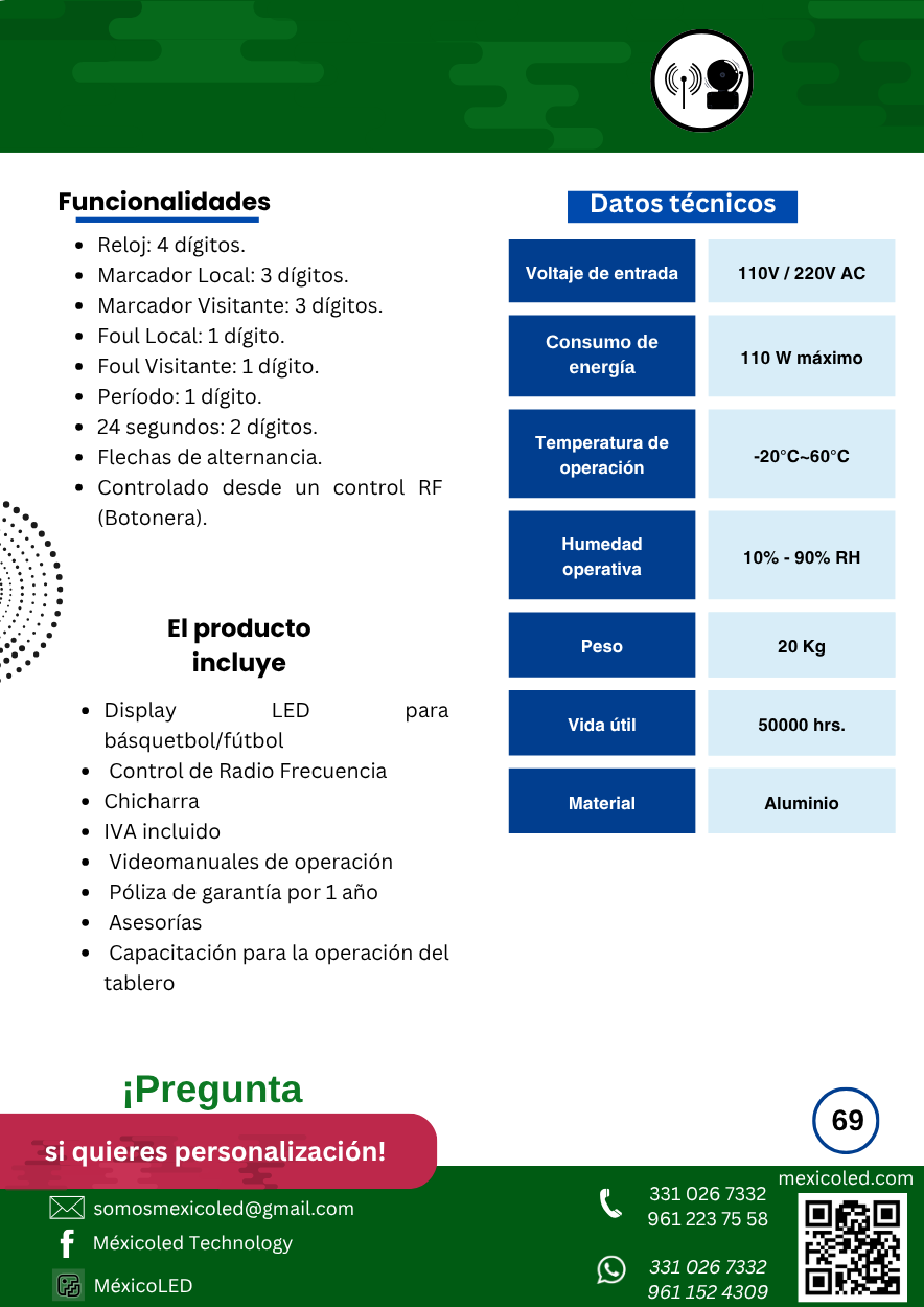 Diseñado para canchas grandes, con excelente visibilidad y dígitos de alto brillo.