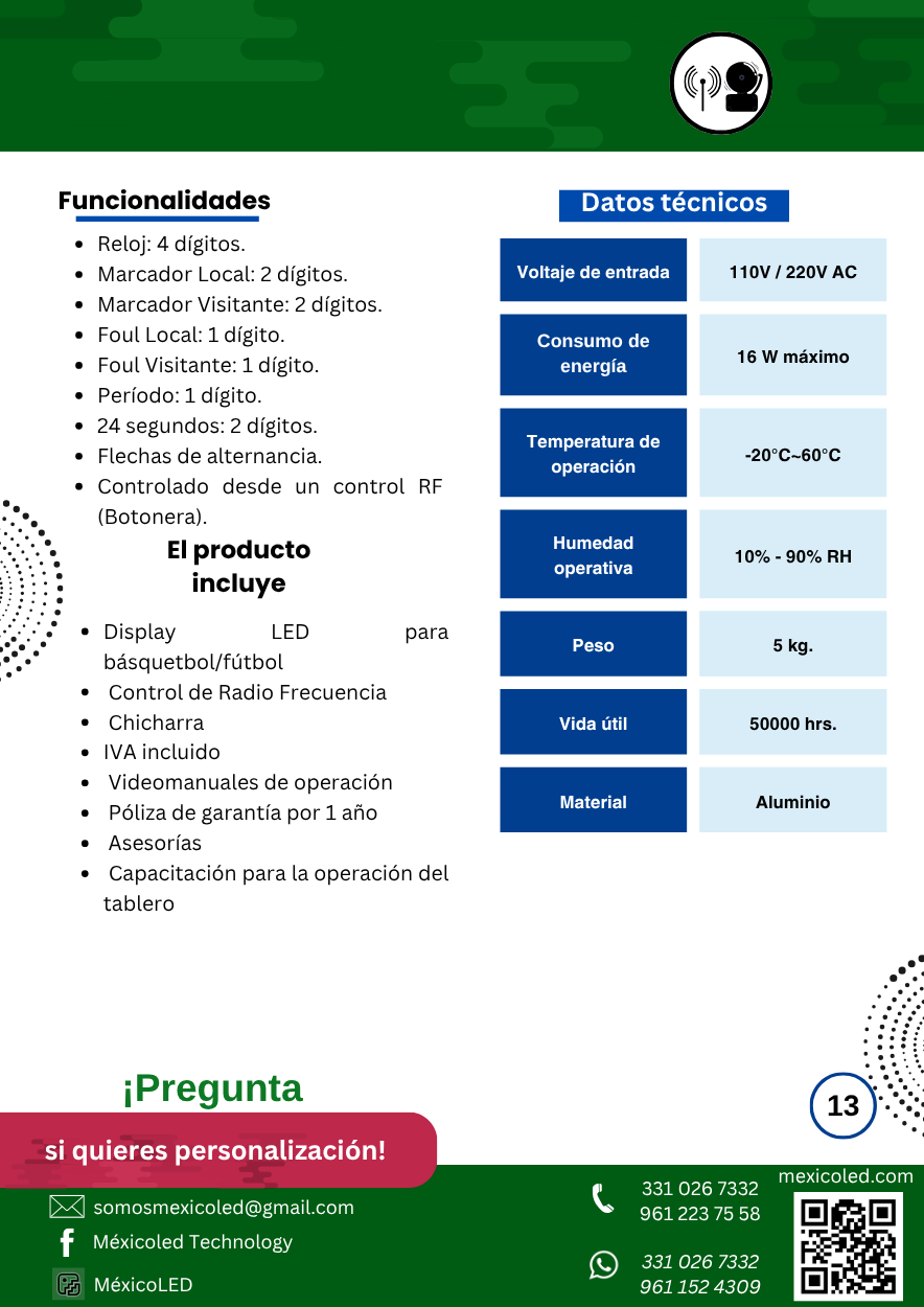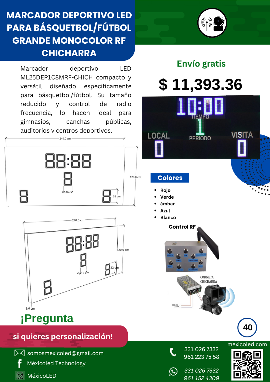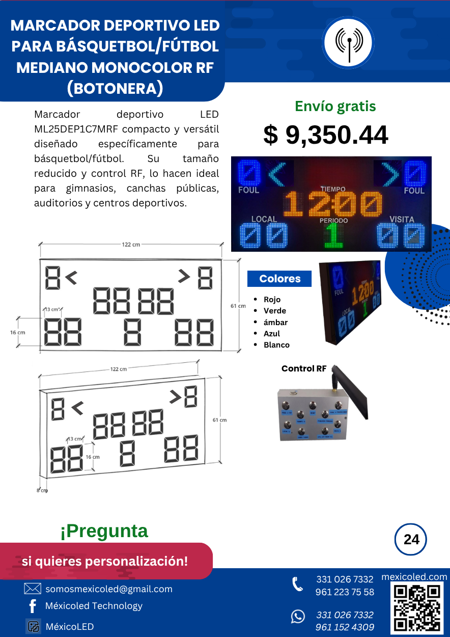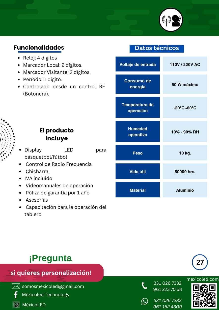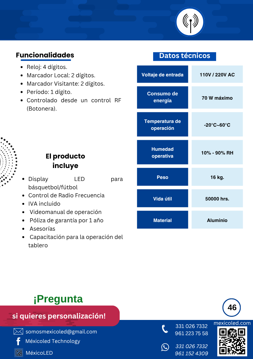 Diseñado para canchas grandes, con excelente visibilidad y dígitos de alto brillo.