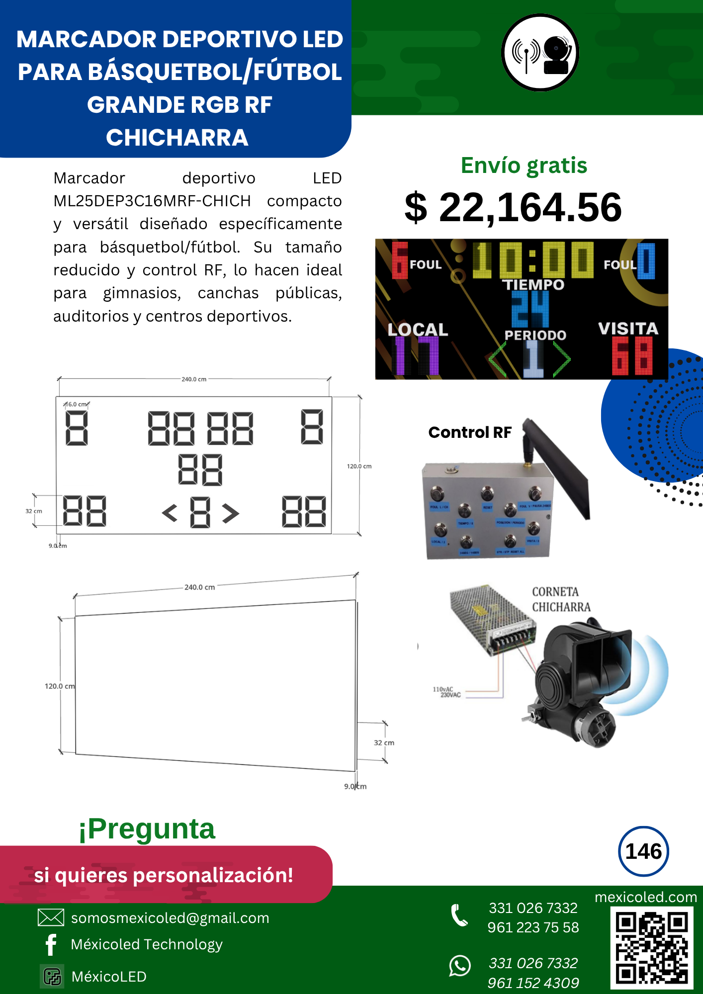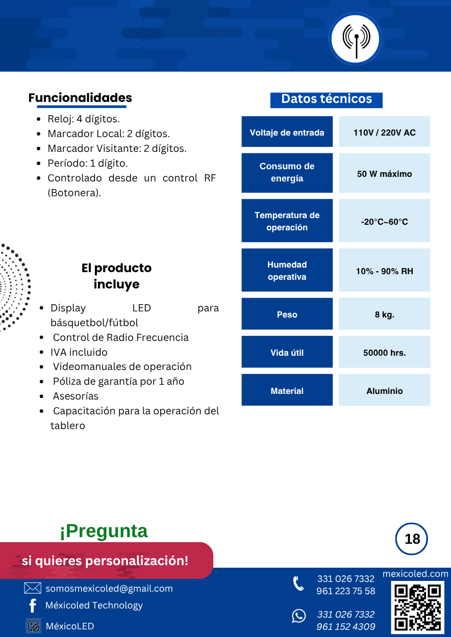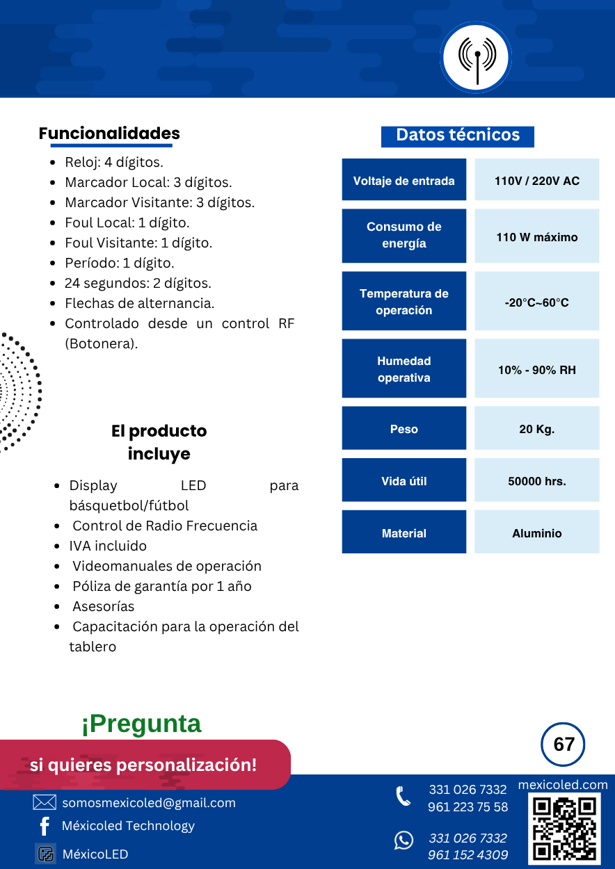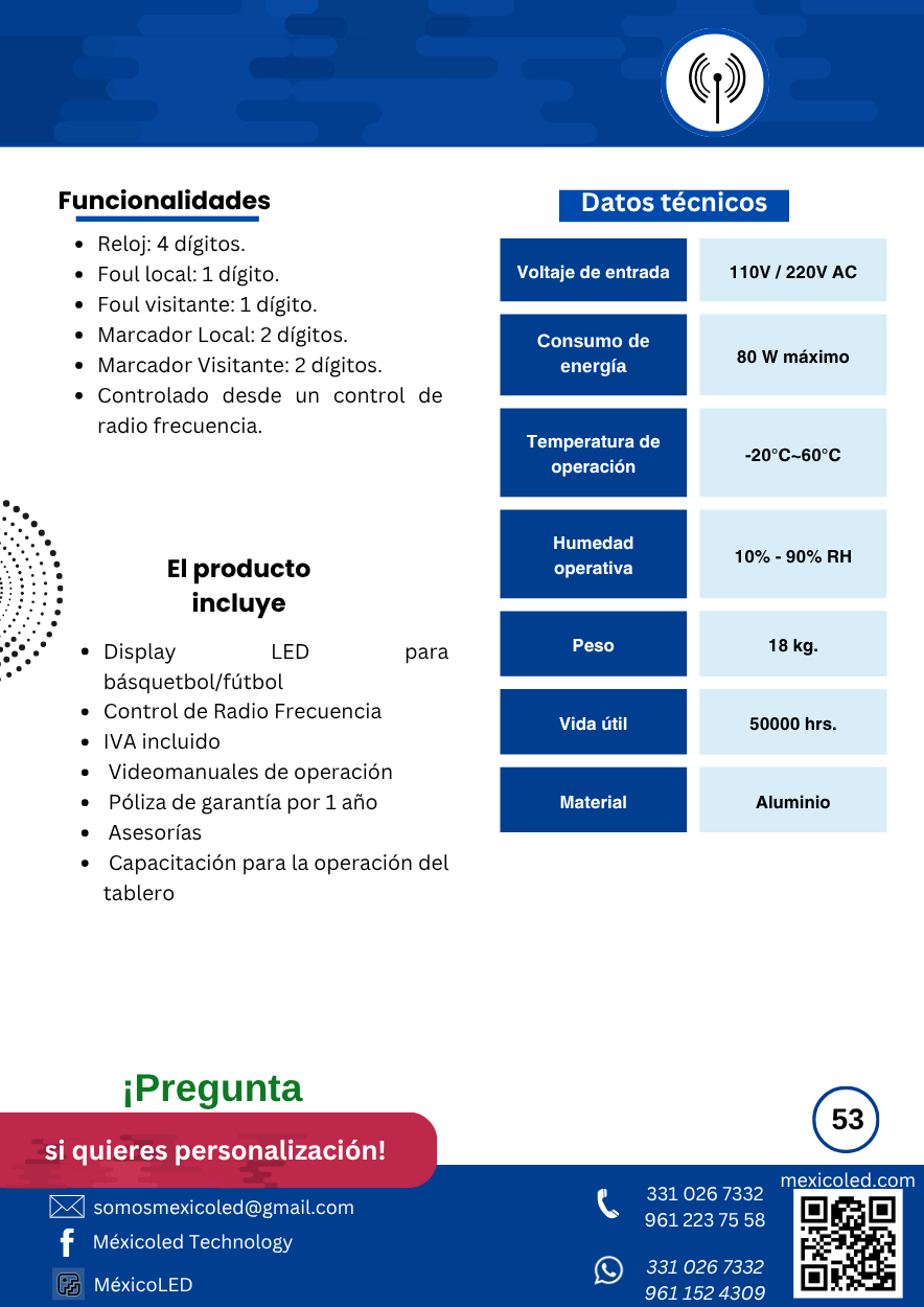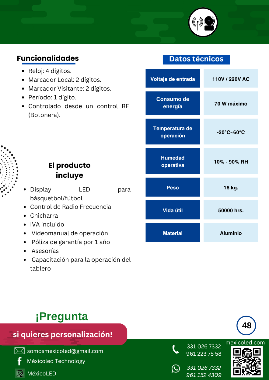 Diseñado para canchas grandes, con excelente visibilidad y dígitos de alto brillo.