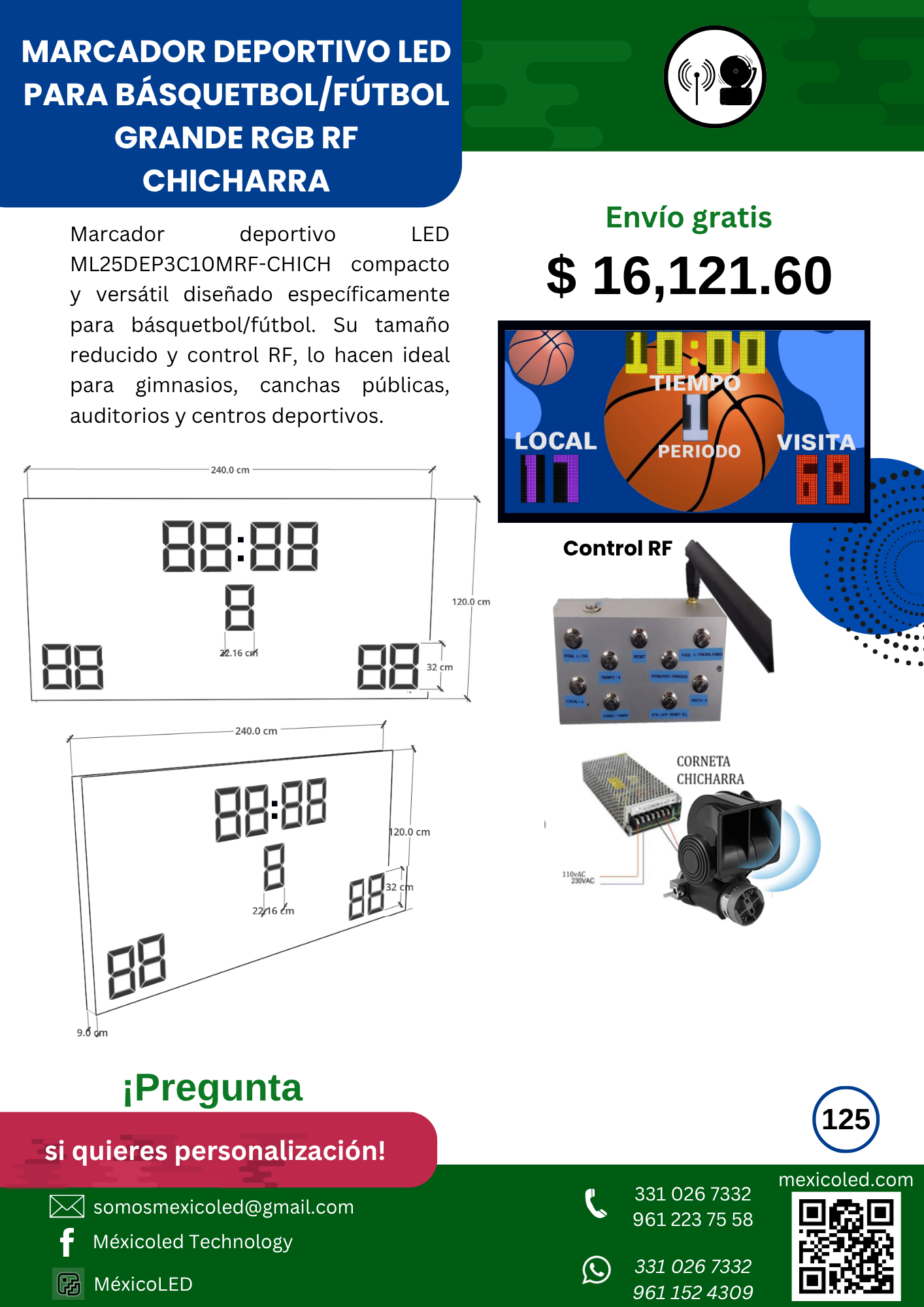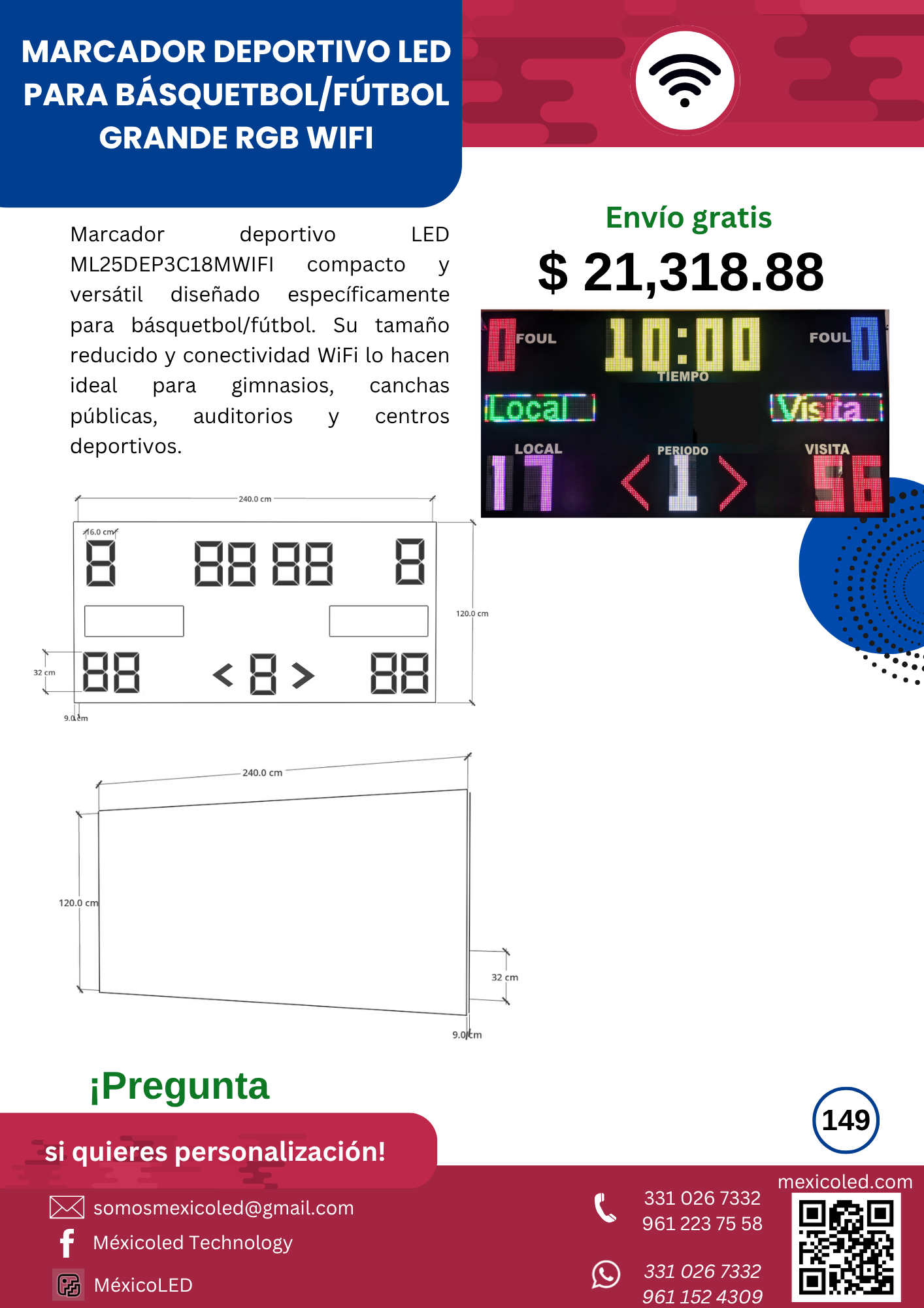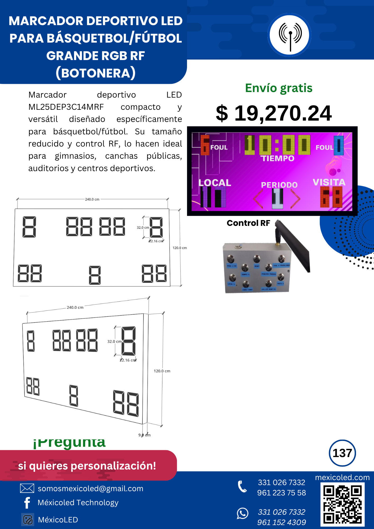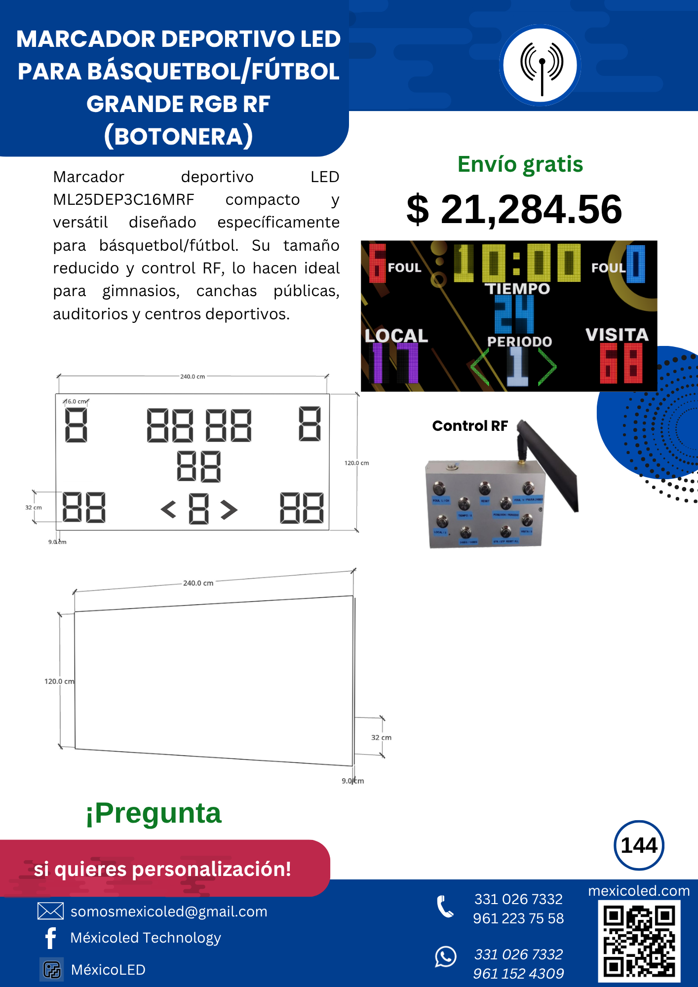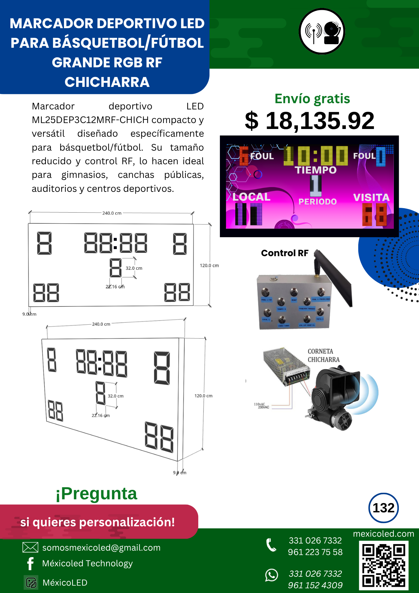 Diseñado para canchas grandes, con excelente visibilidad y dígitos de alto brillo.