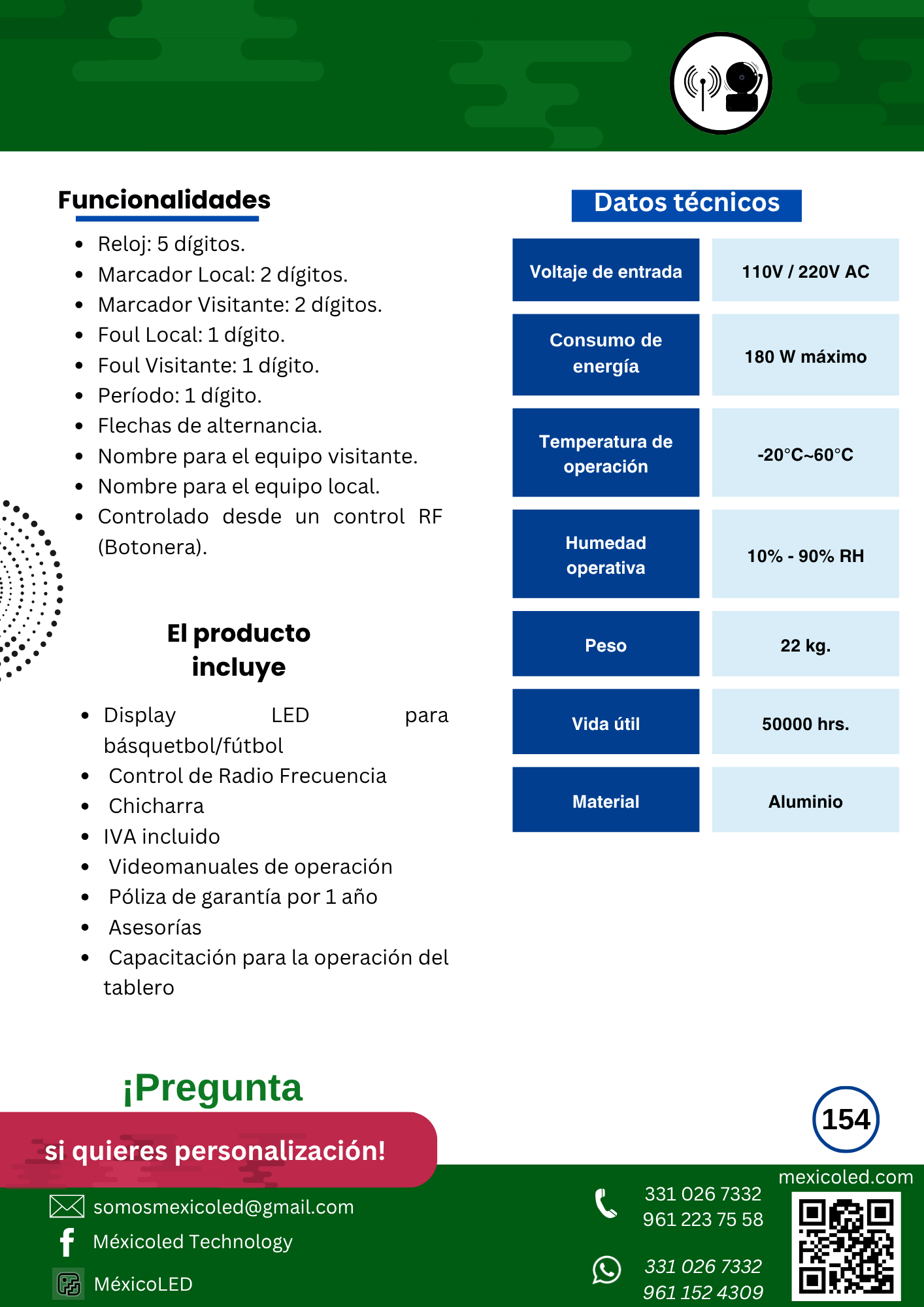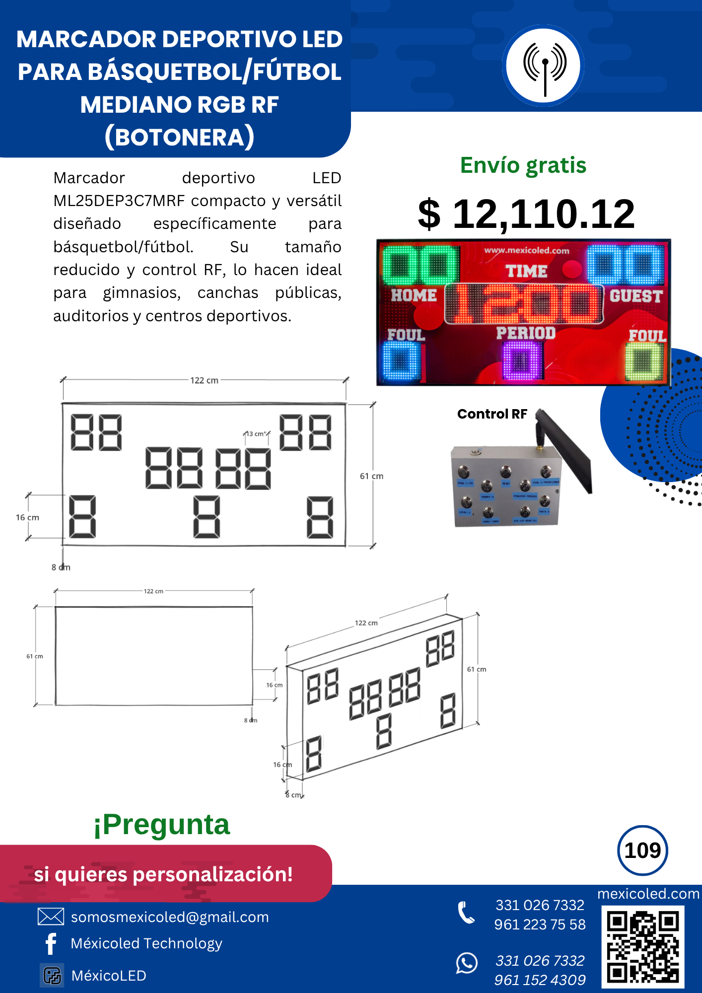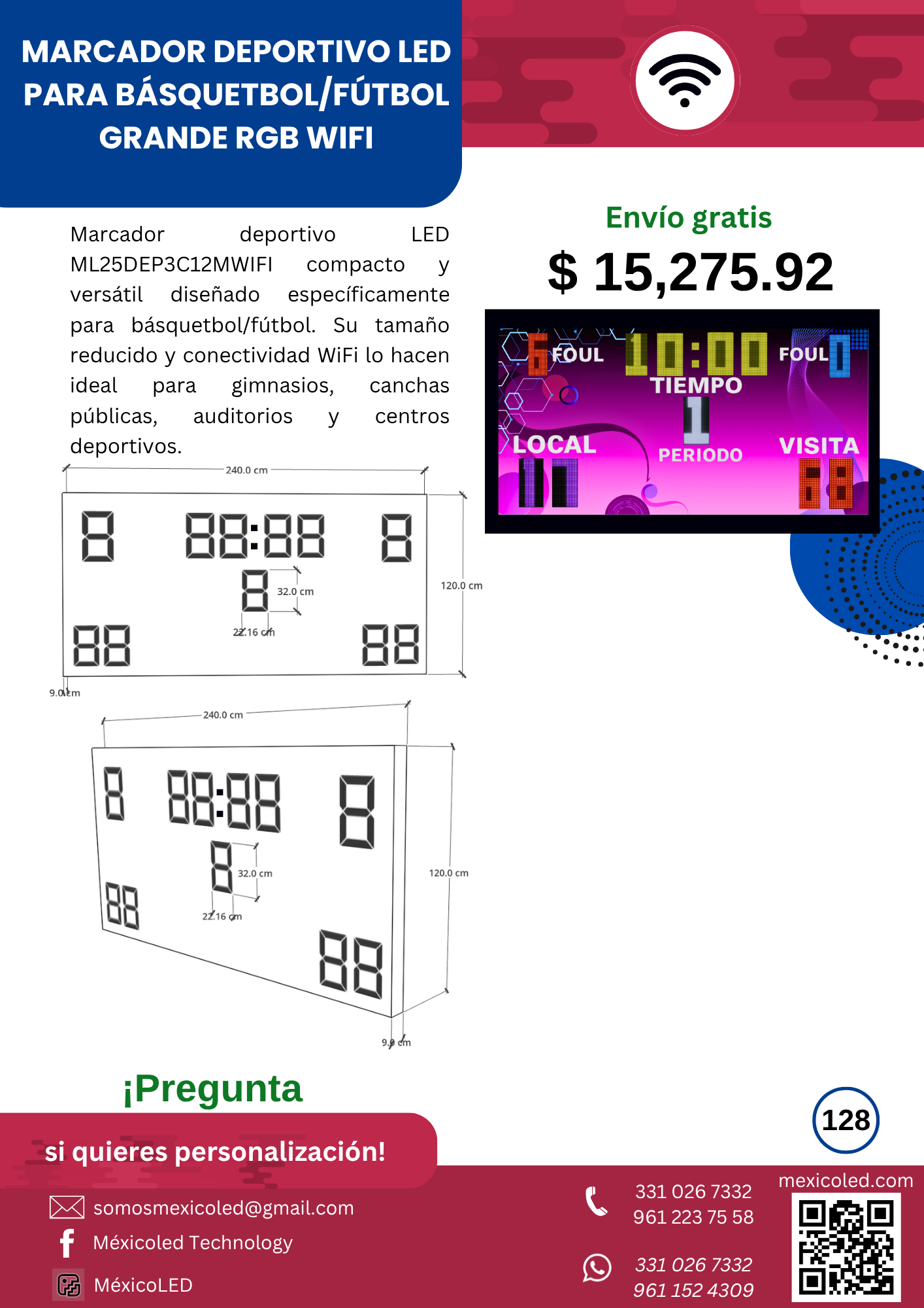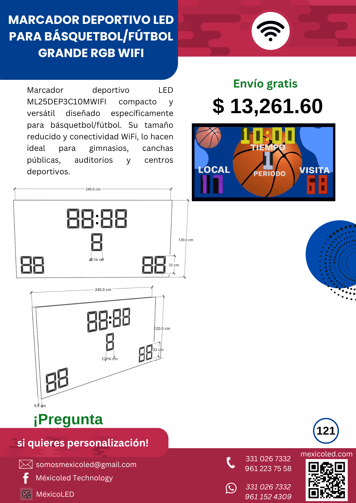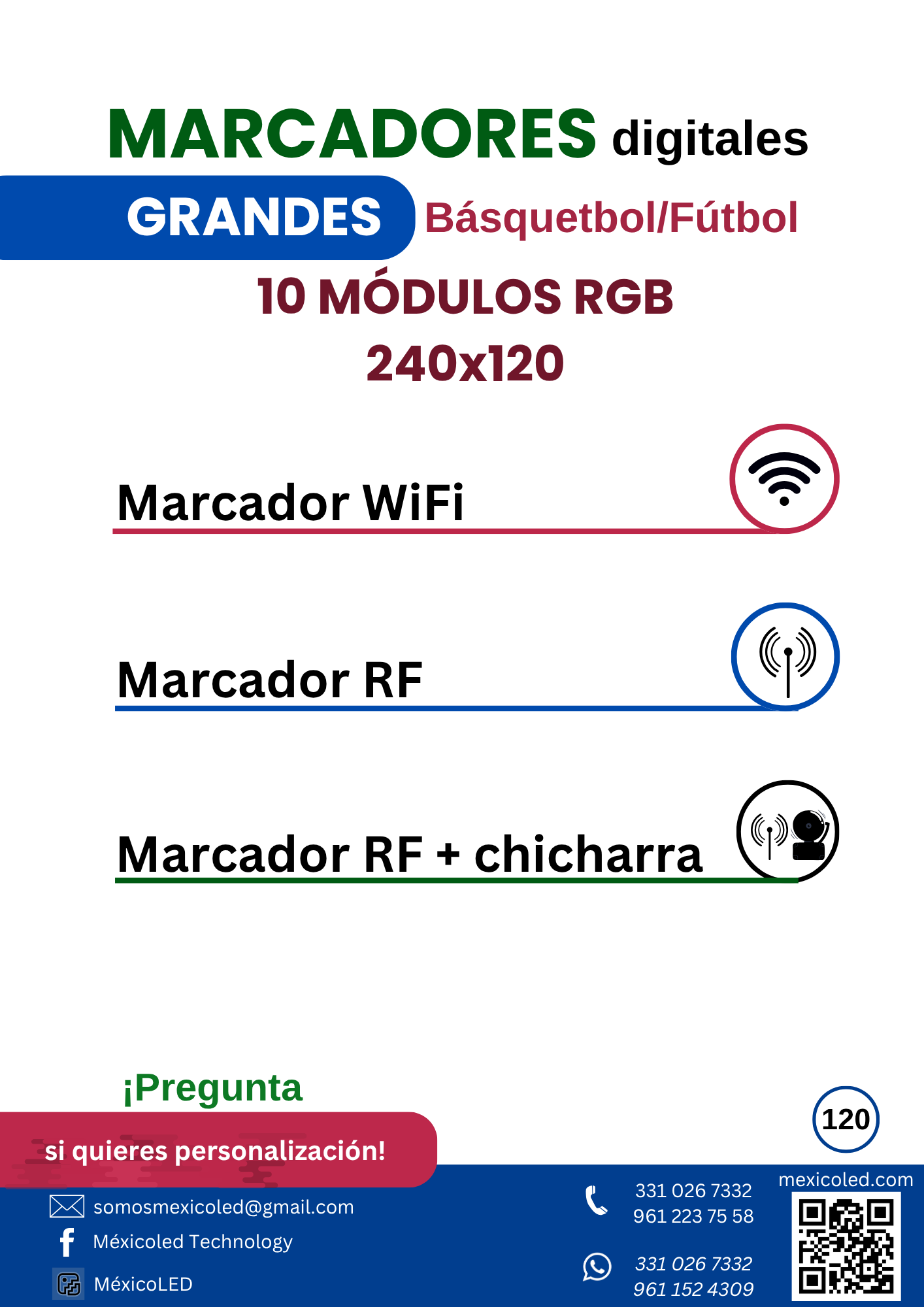 Diseñado para canchas grandes, con excelente visibilidad y dígitos de alto brillo.
