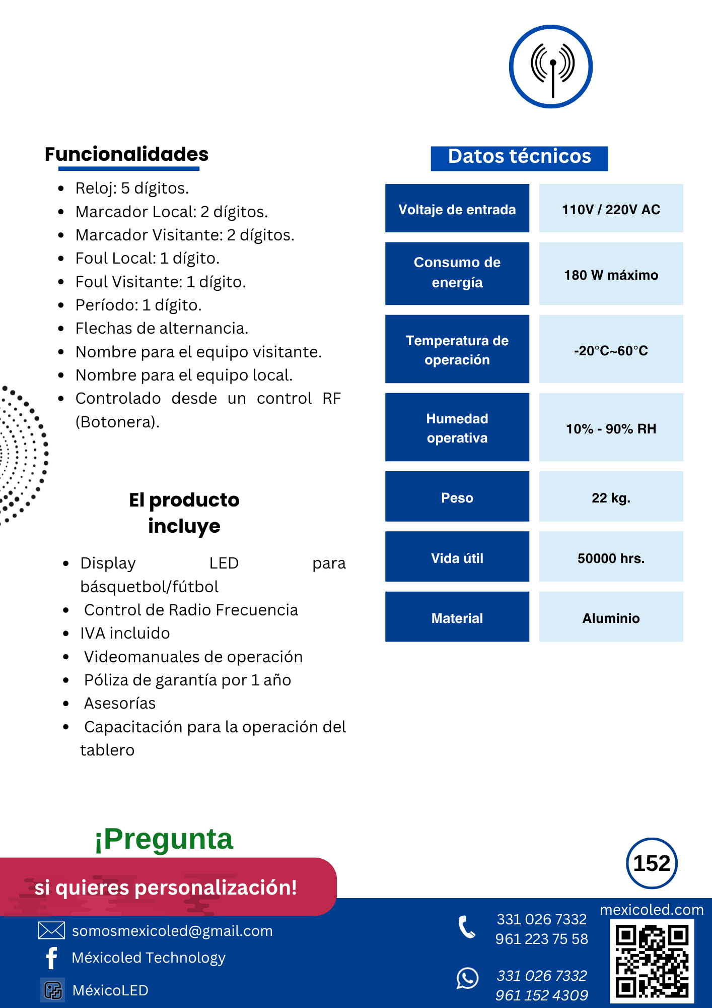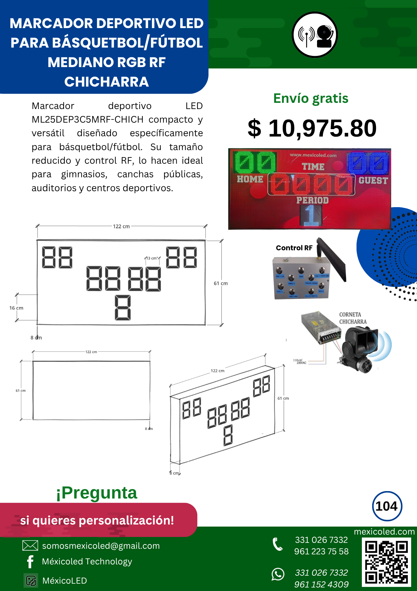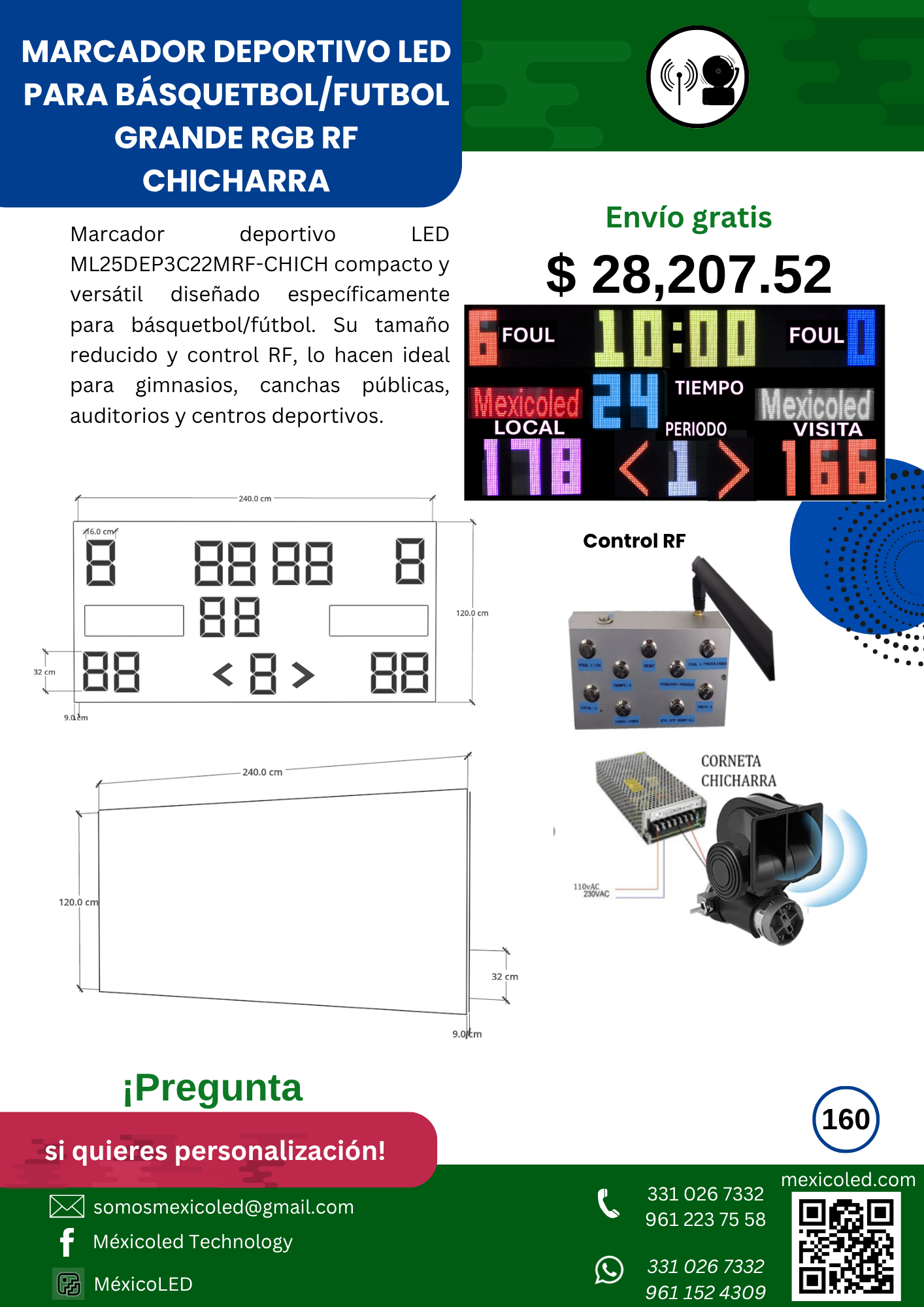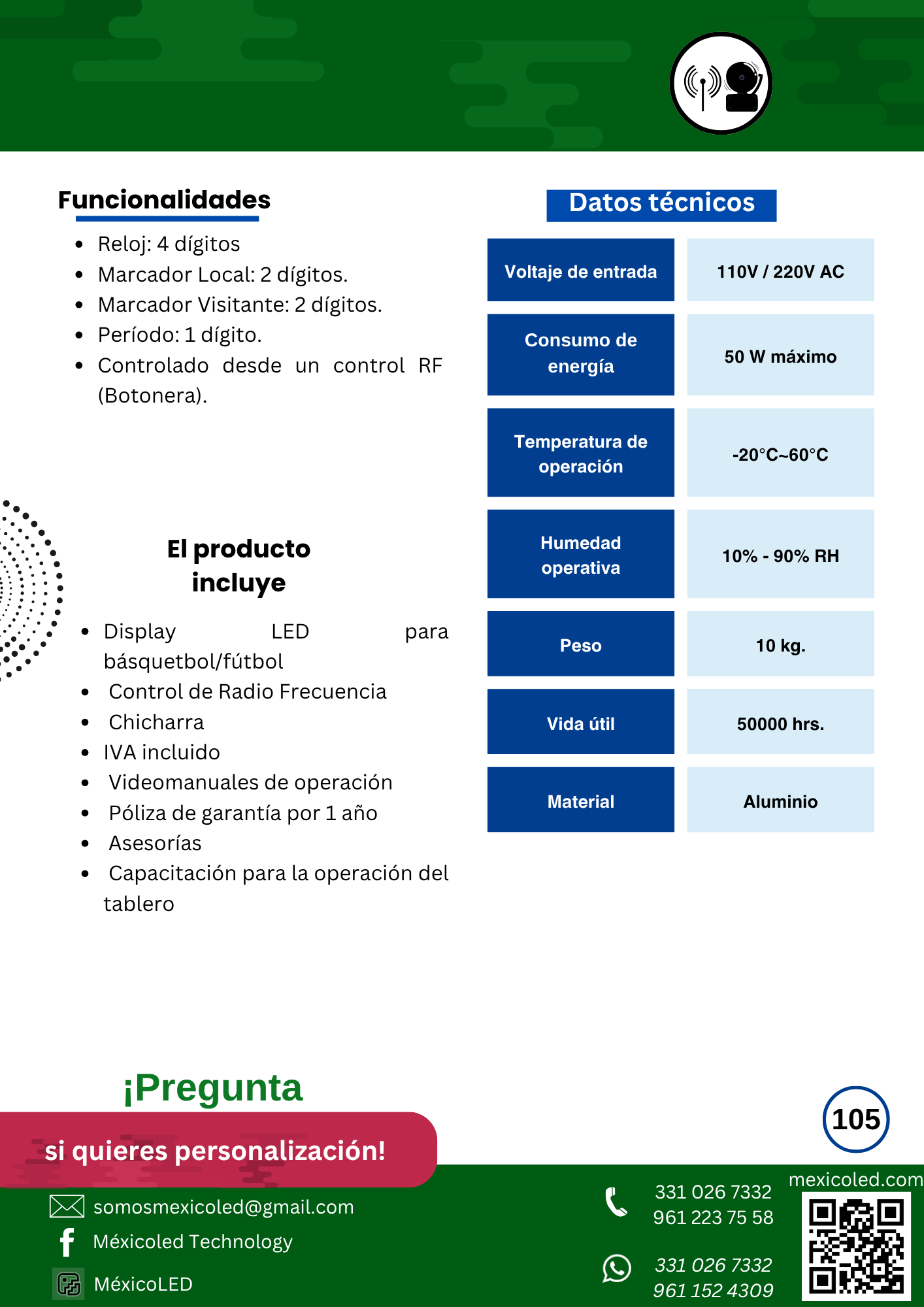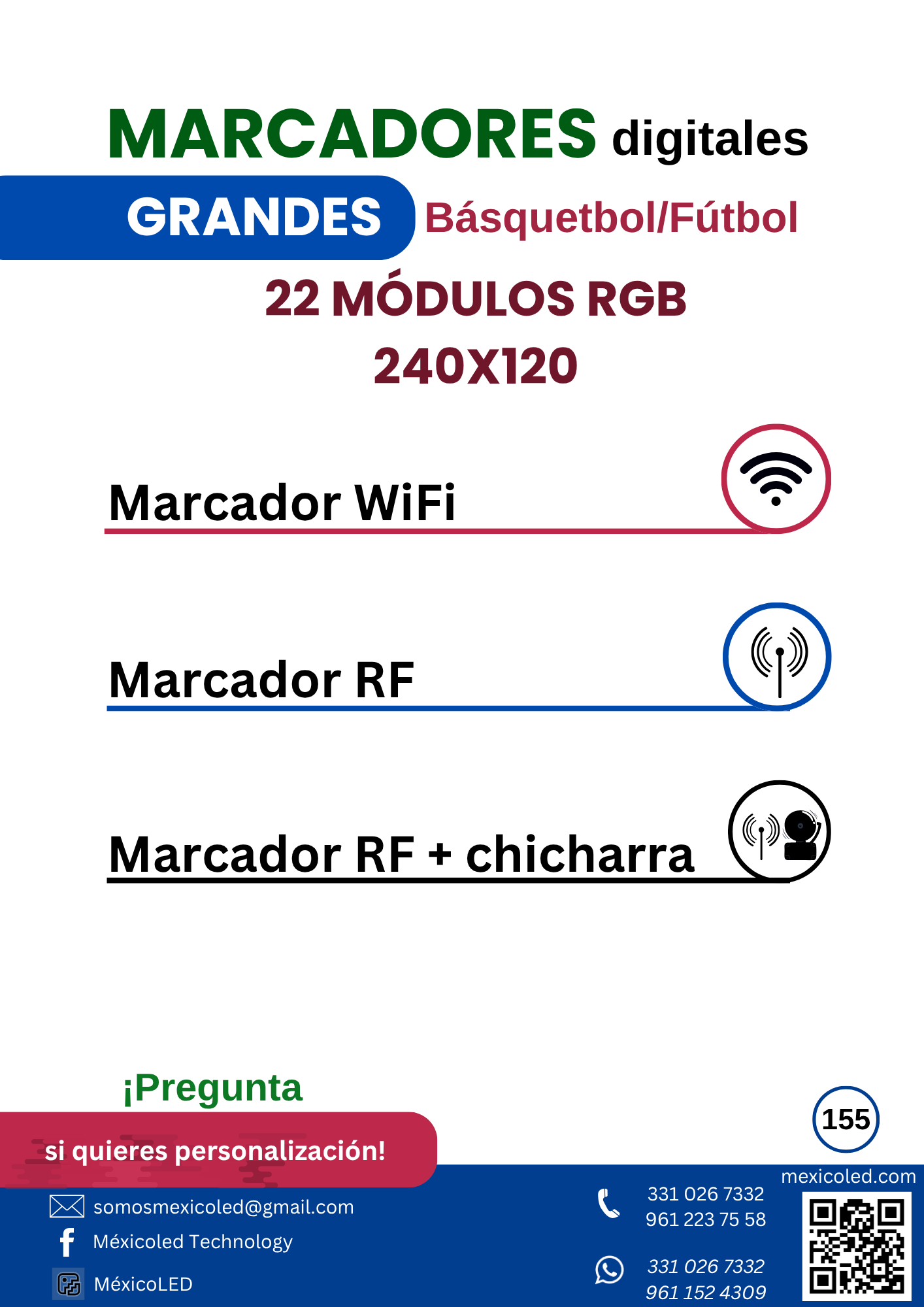 Diseñado para canchas grandes, con excelente visibilidad y dígitos de alto brillo.