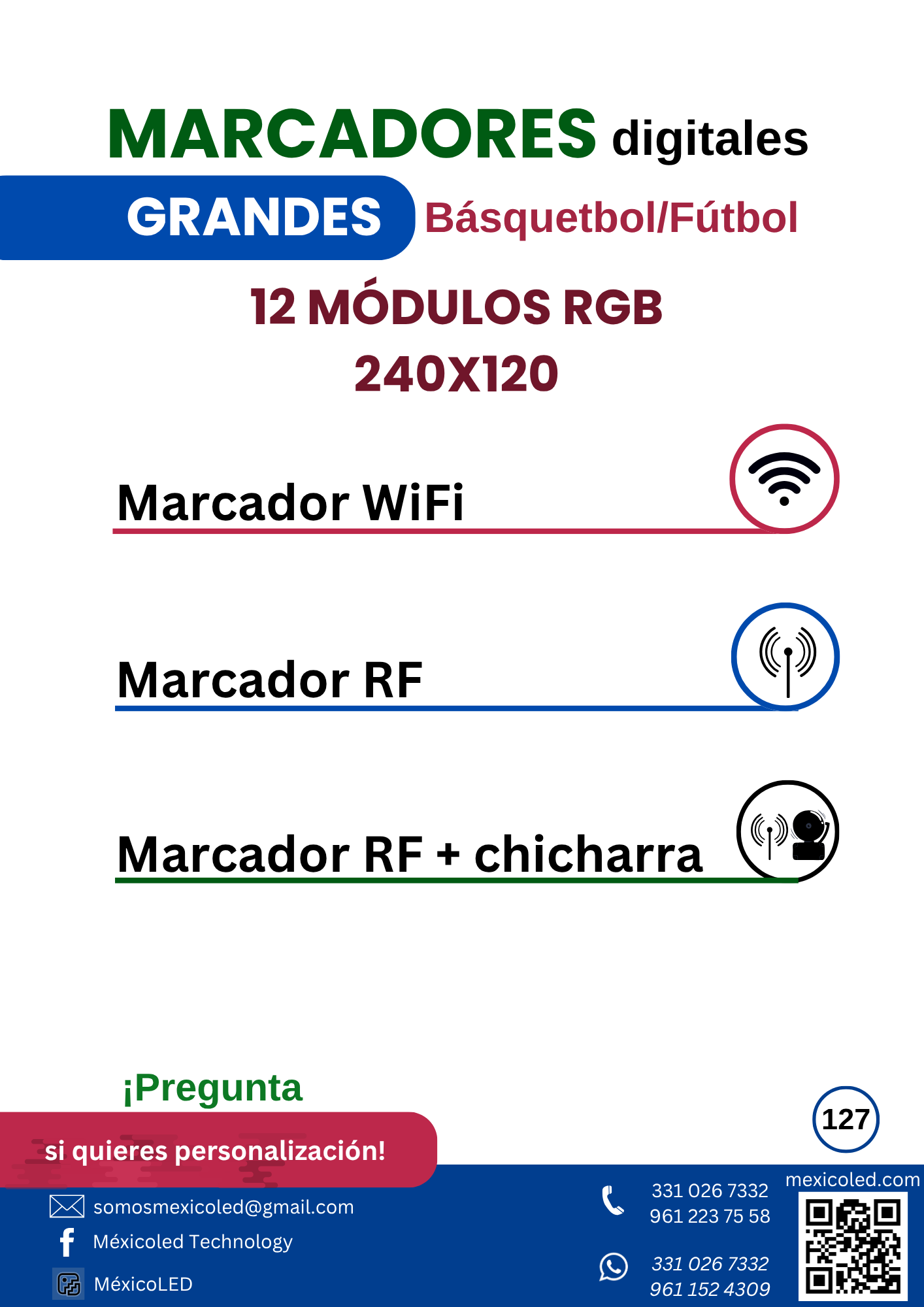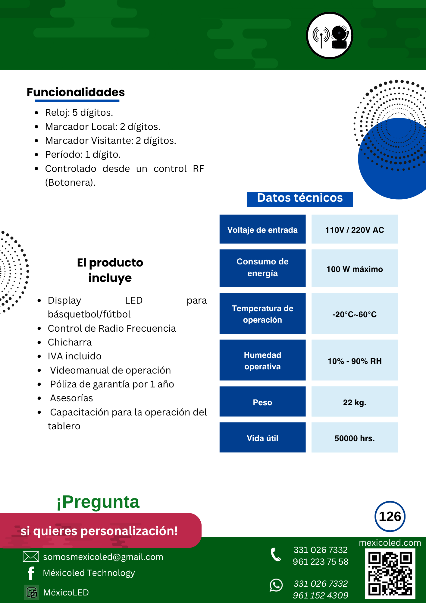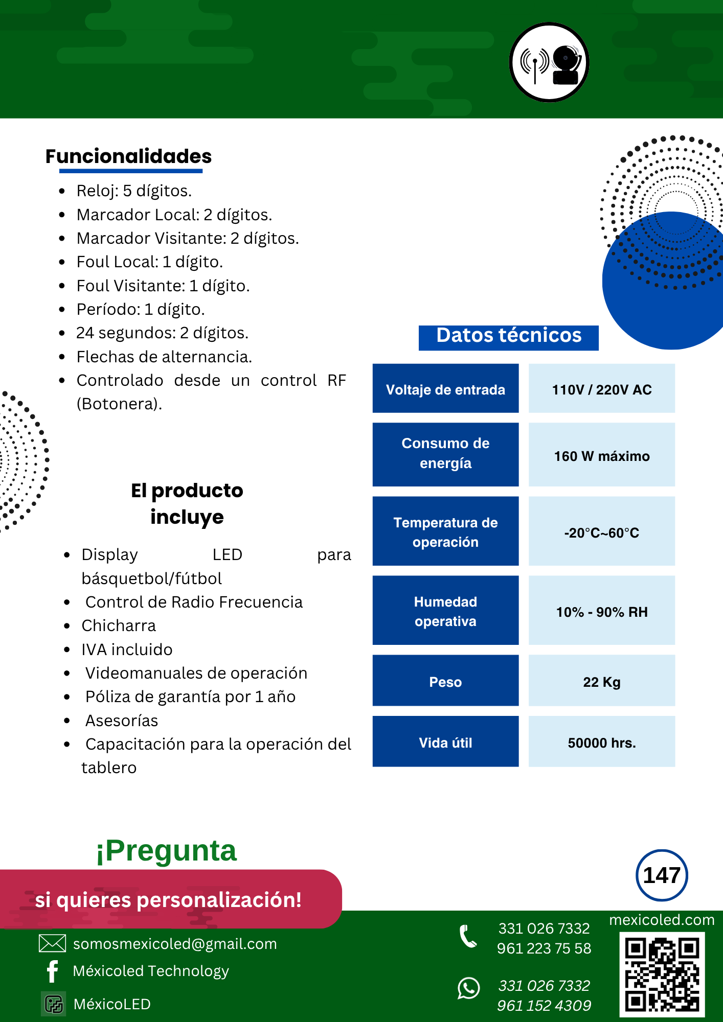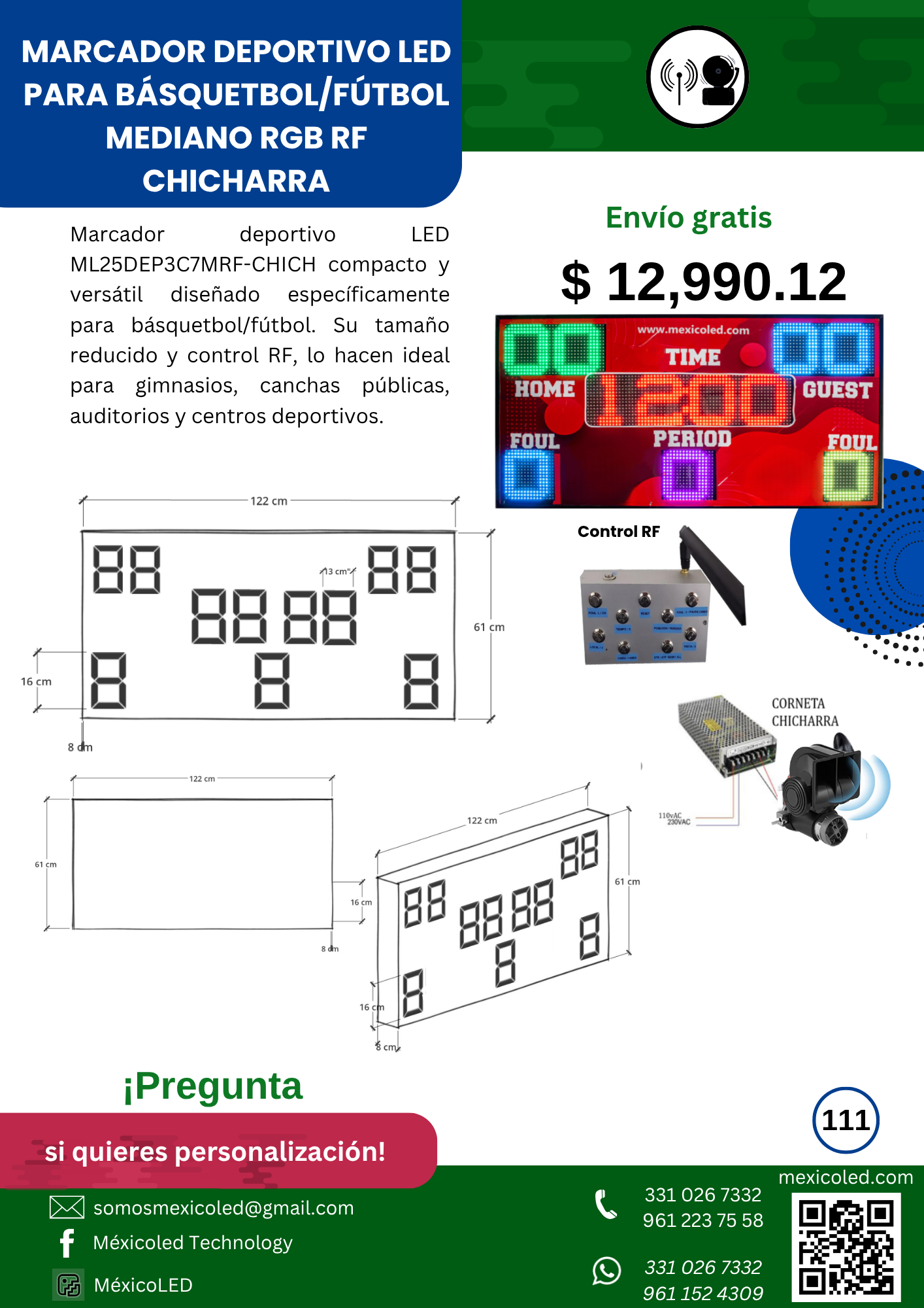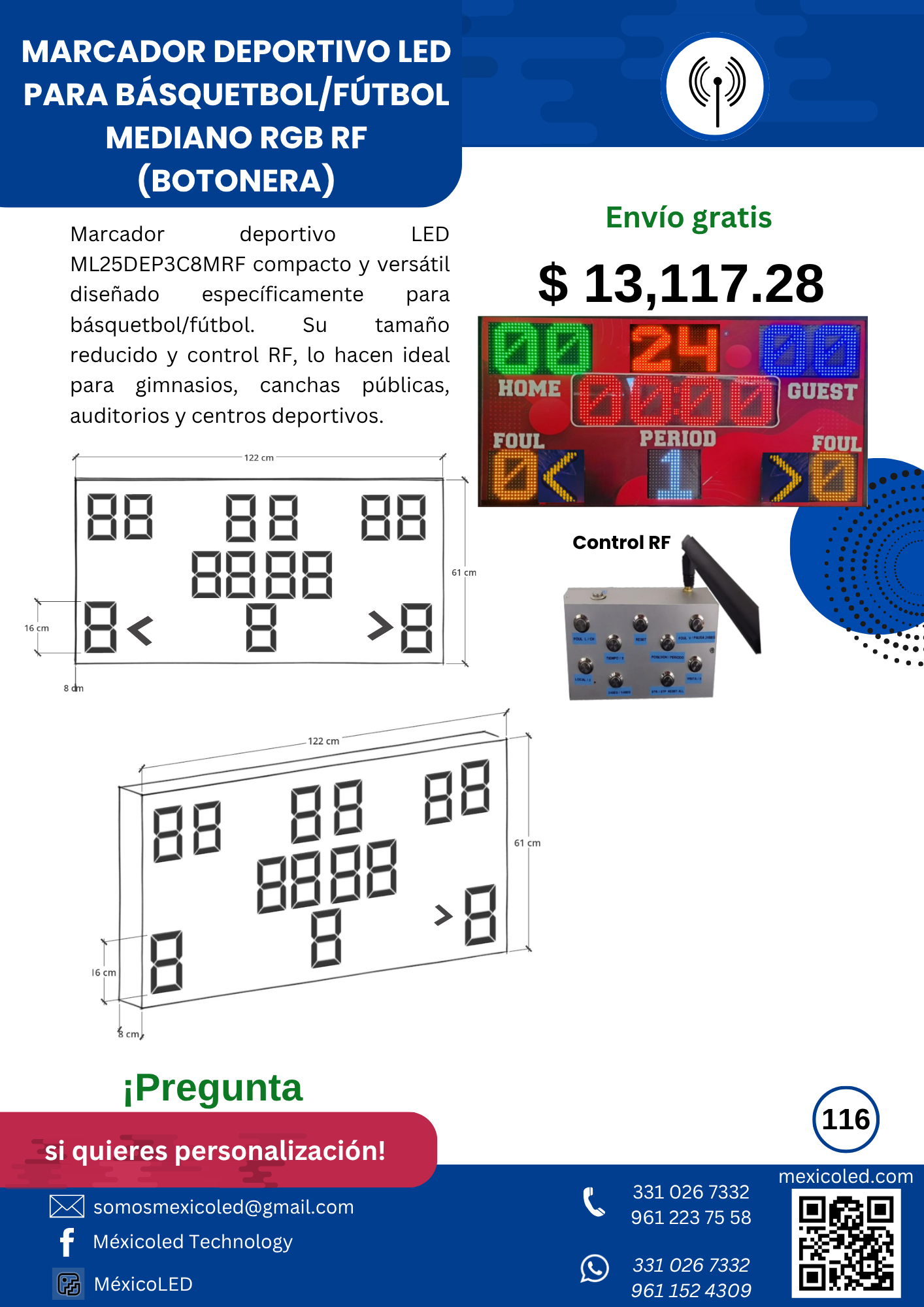 Diseñado para canchas grandes, con excelente visibilidad y dígitos de alto brillo.