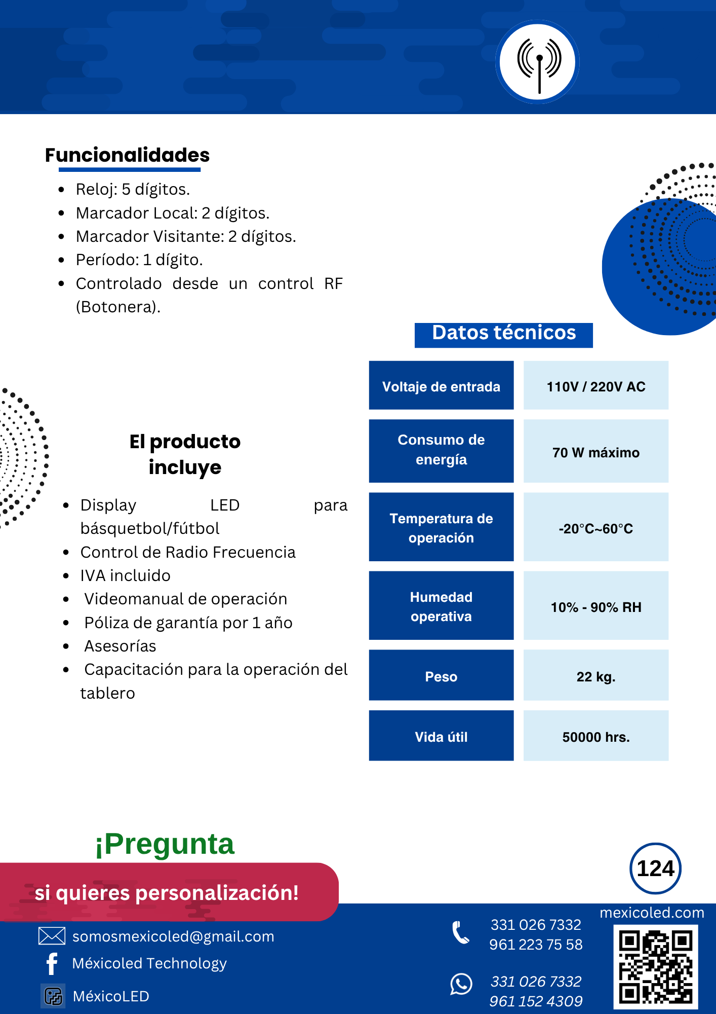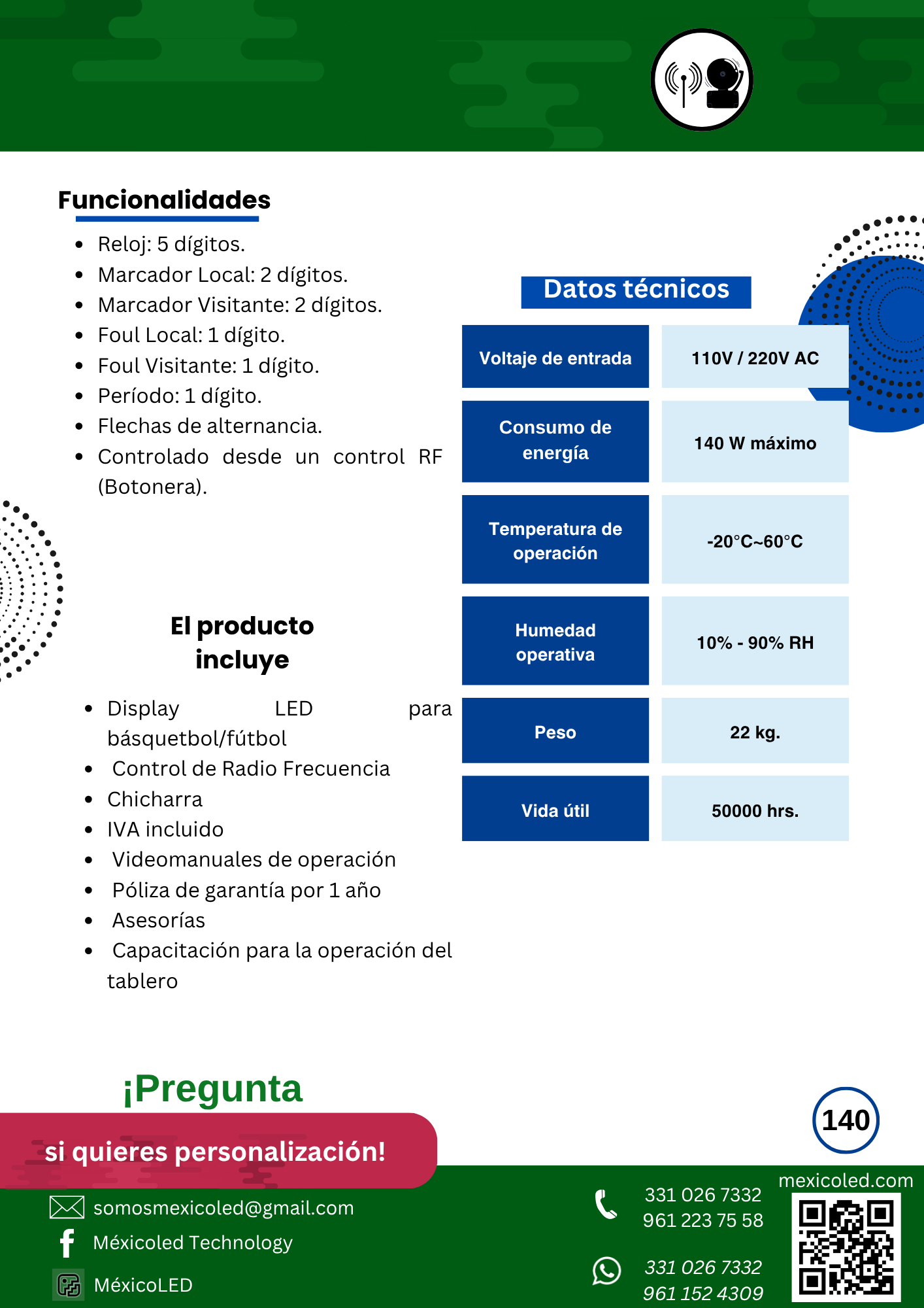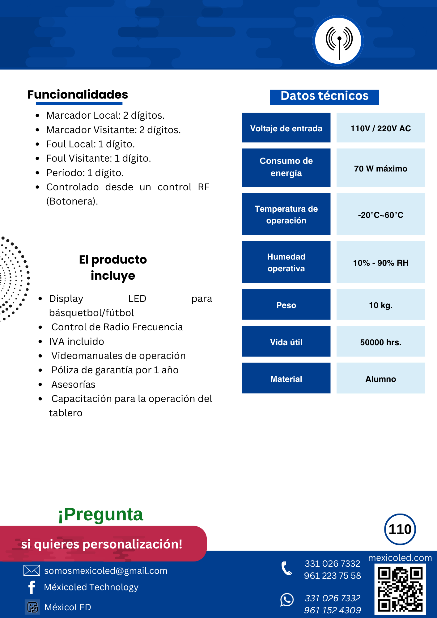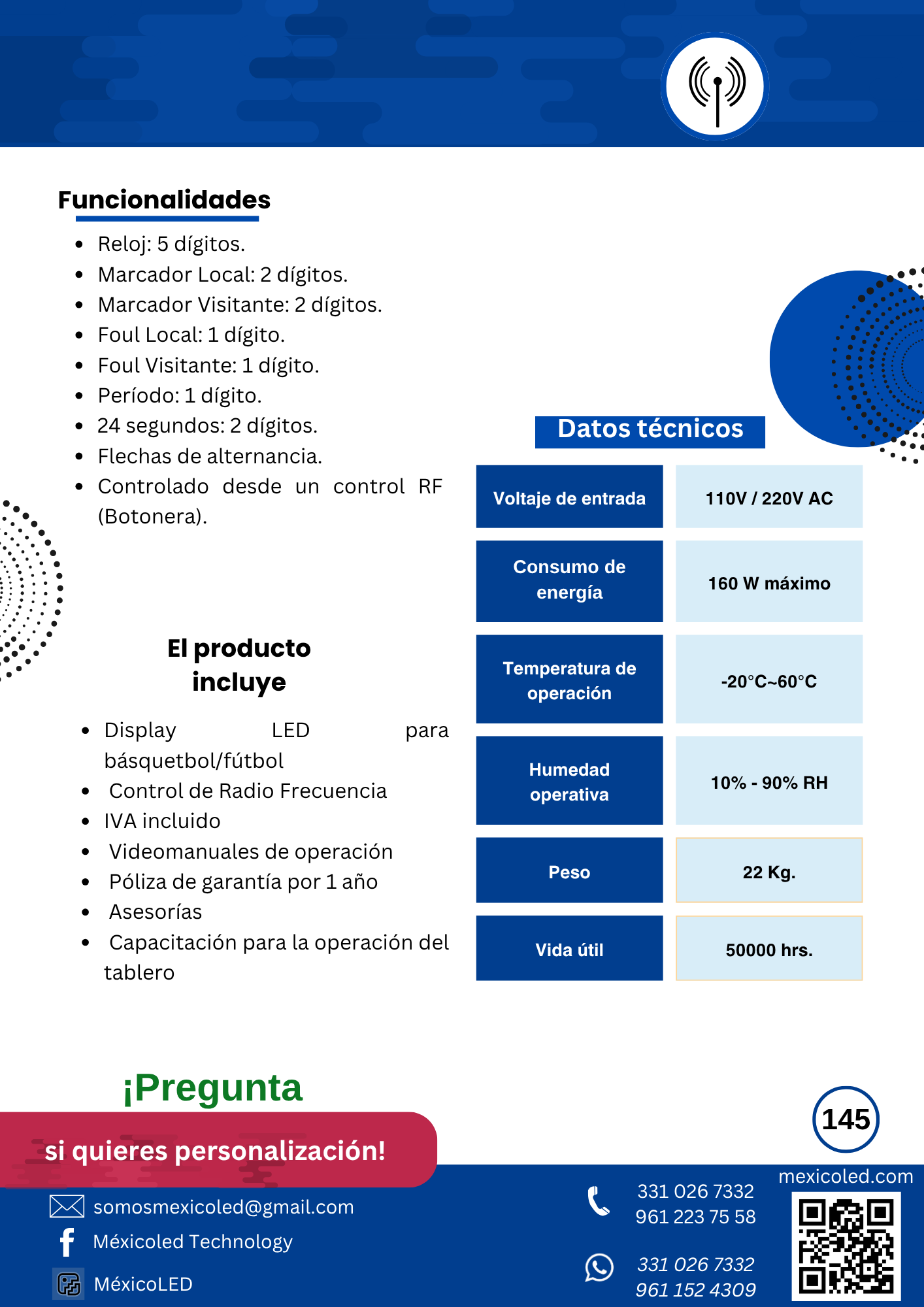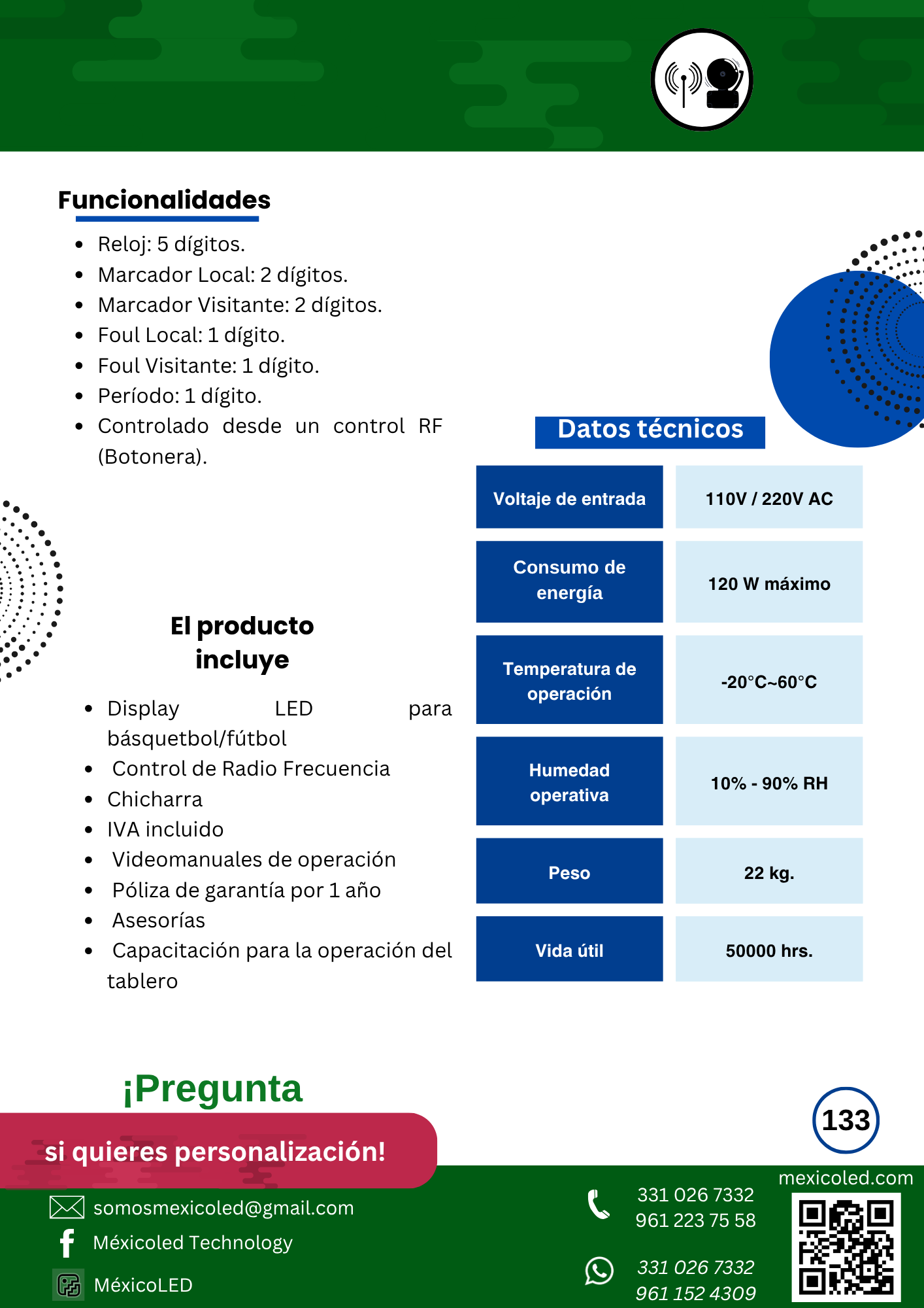 Diseñado para canchas grandes, con excelente visibilidad y dígitos de alto brillo.
