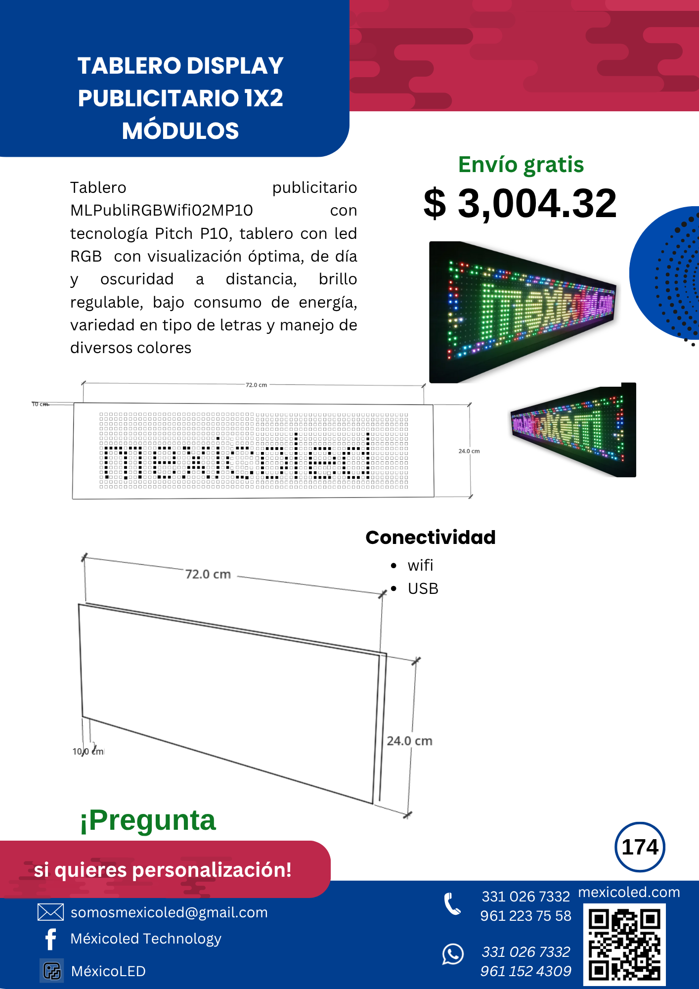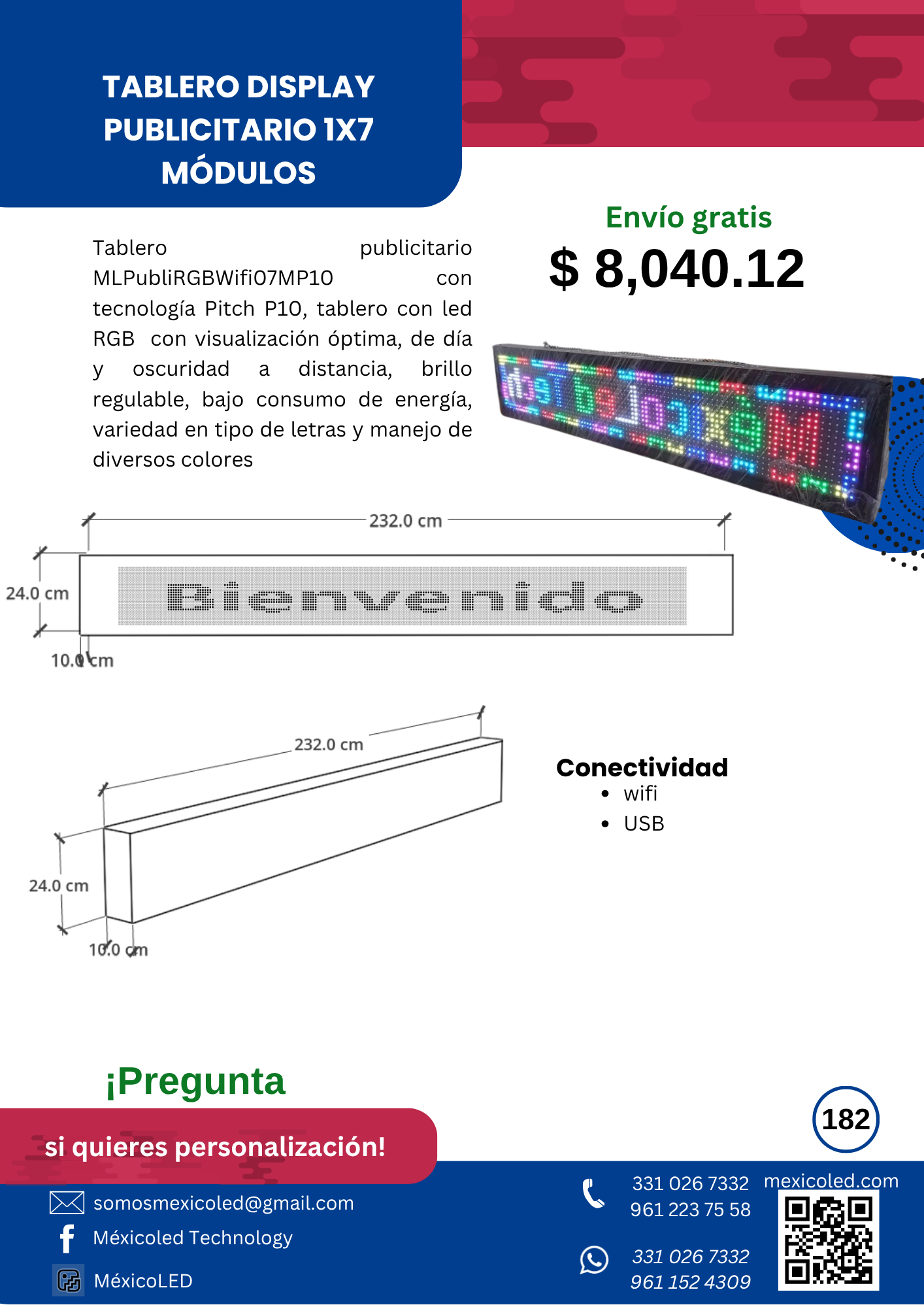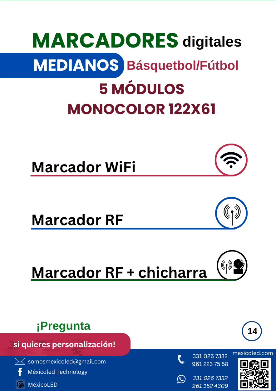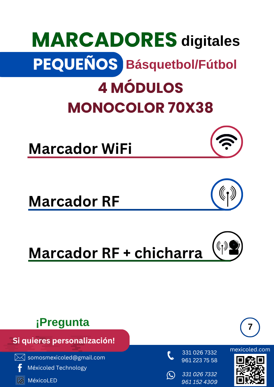 Diseñados para mensajes fijos o desplazables. Ideal para anuncios e información.