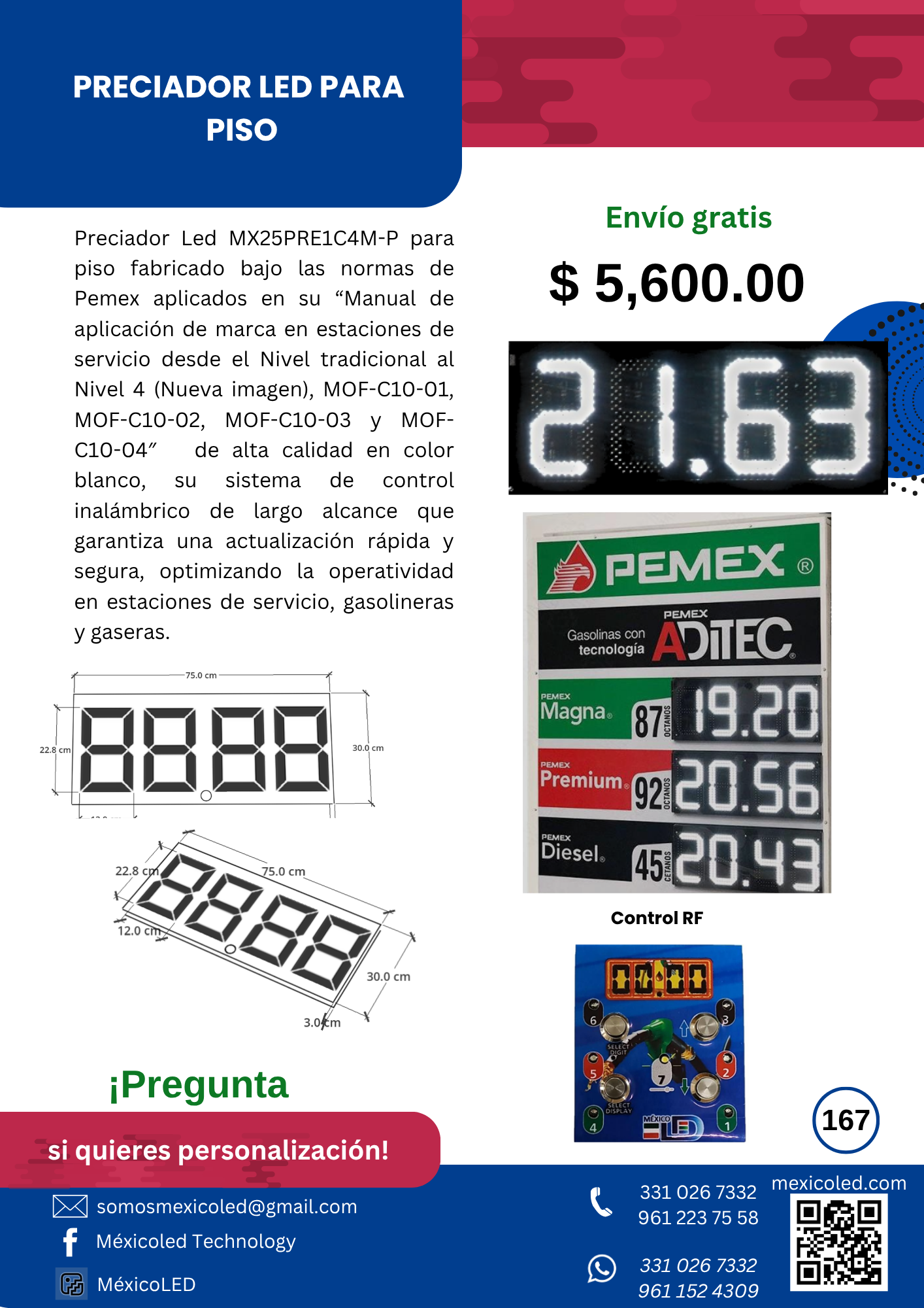 Diseñado para instalación en tótems de gasolineras o estructuras elevadas, con alta visibilidad diurna y nocturna.