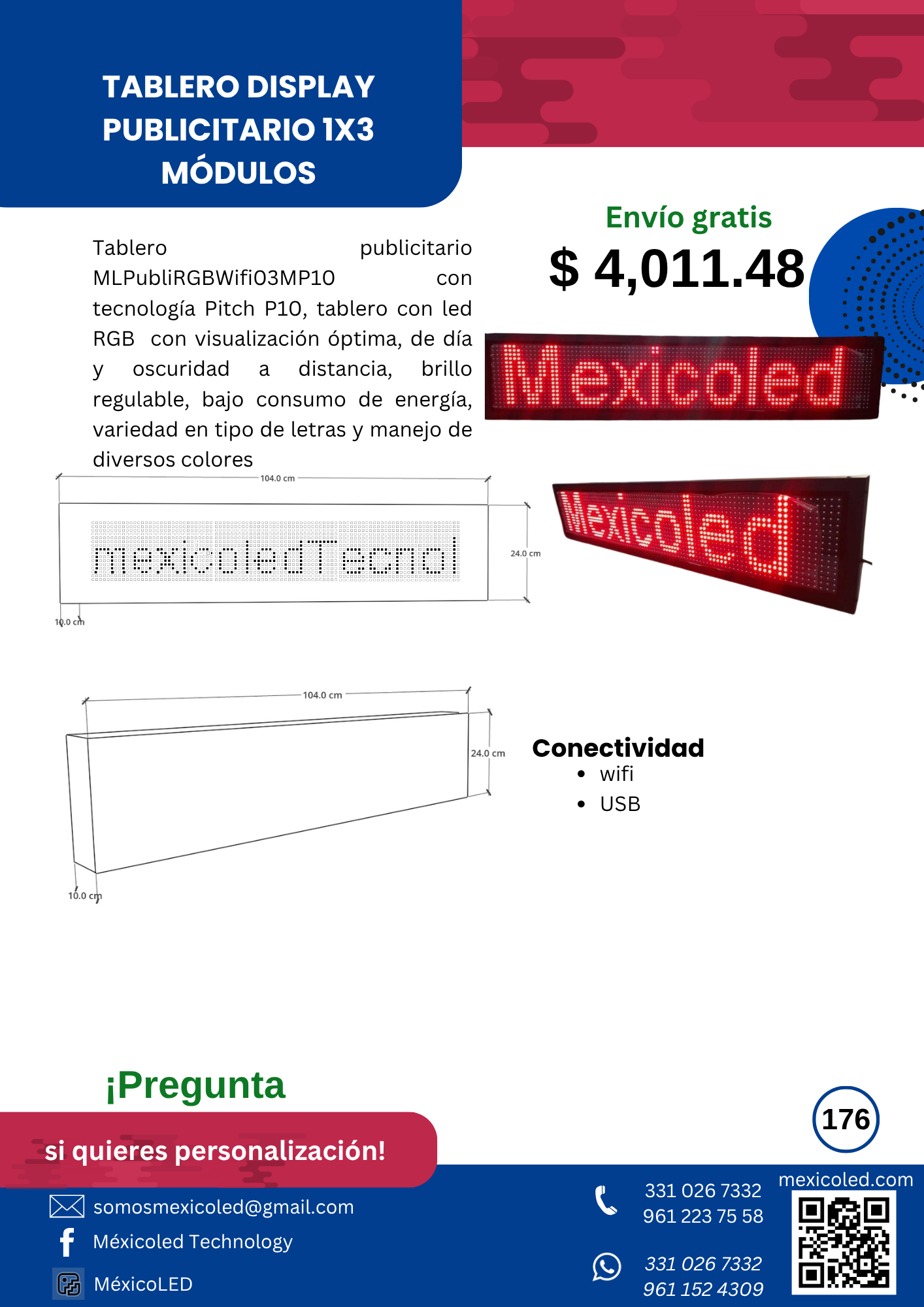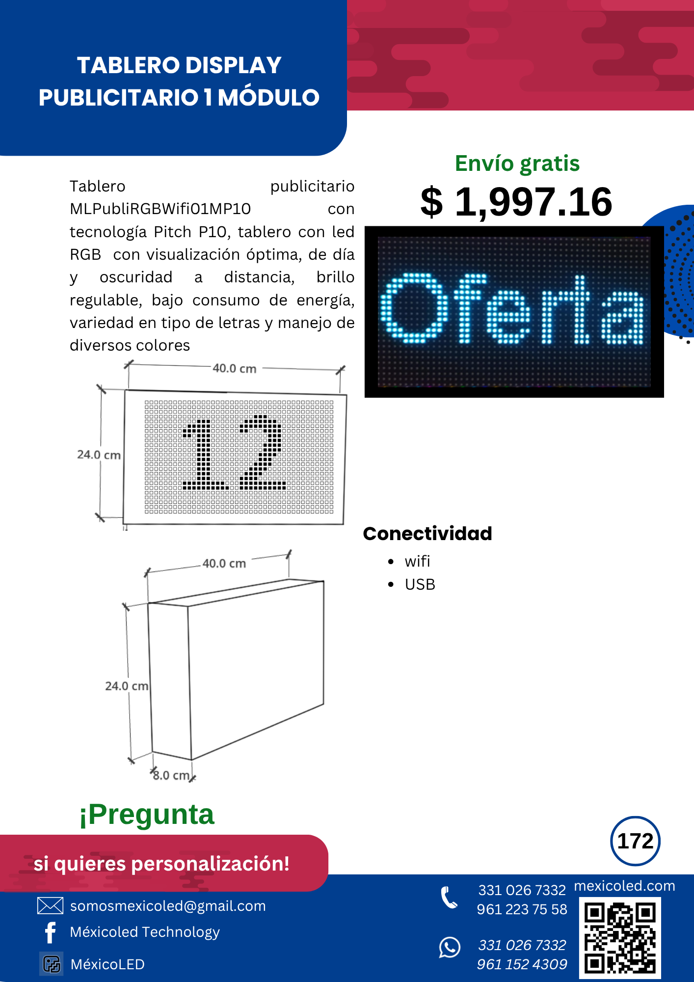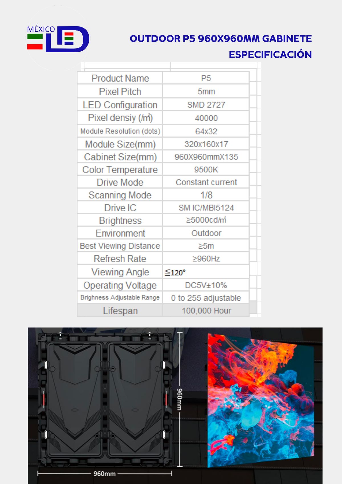 Ideal para gran formato, visible desde largas distancias. Alta luminosidad y durabilidad.