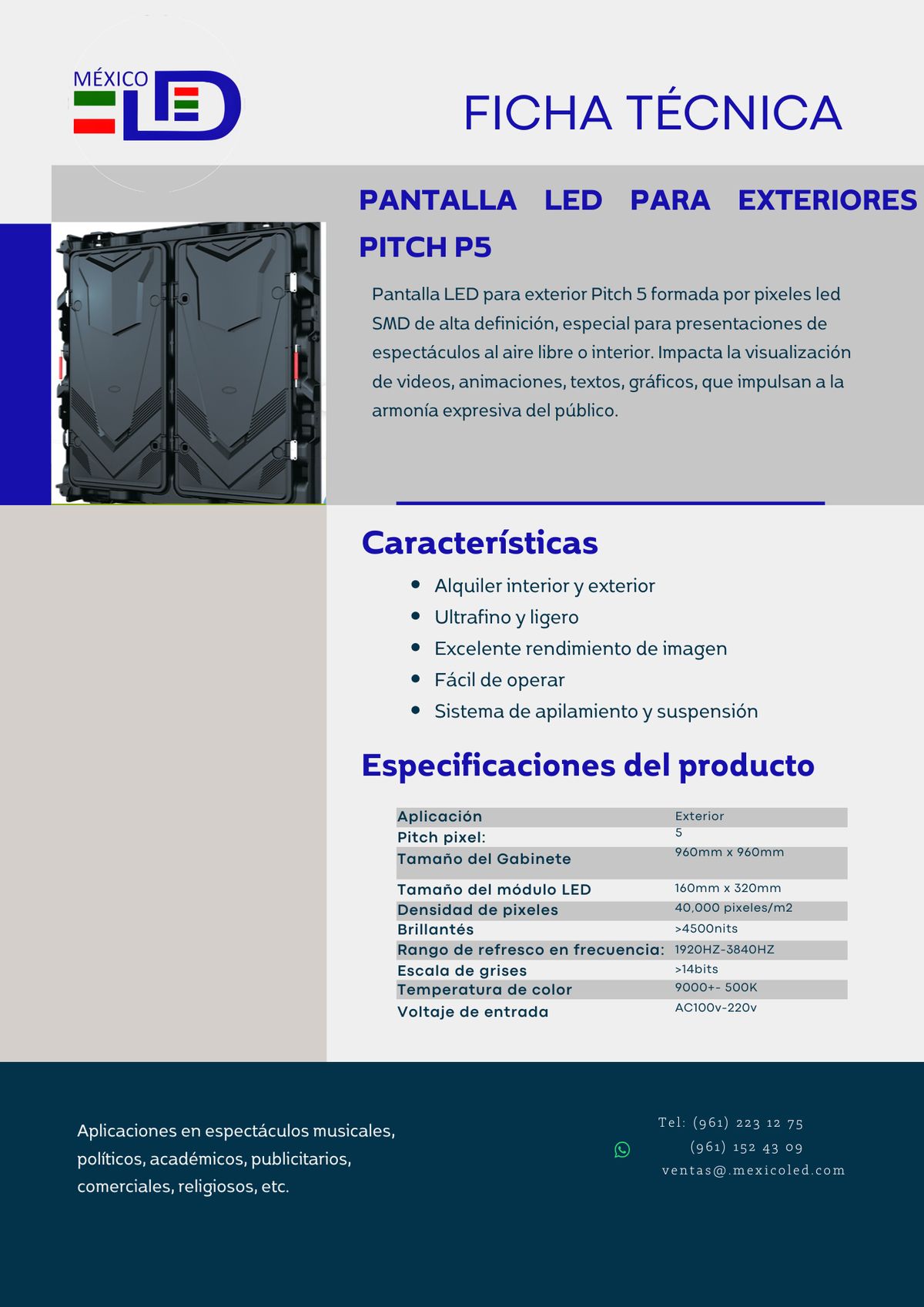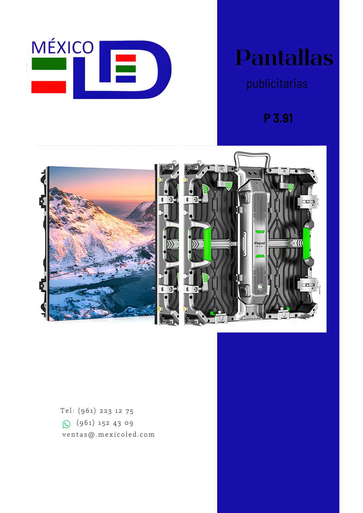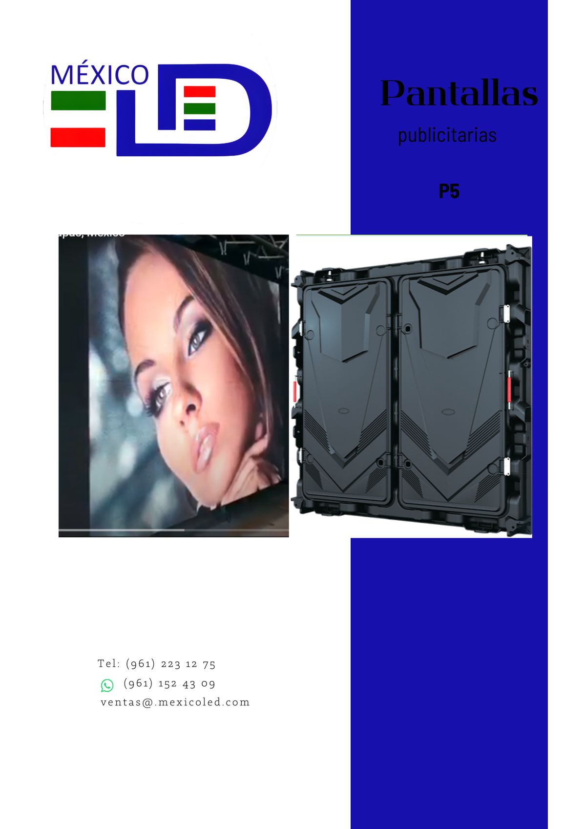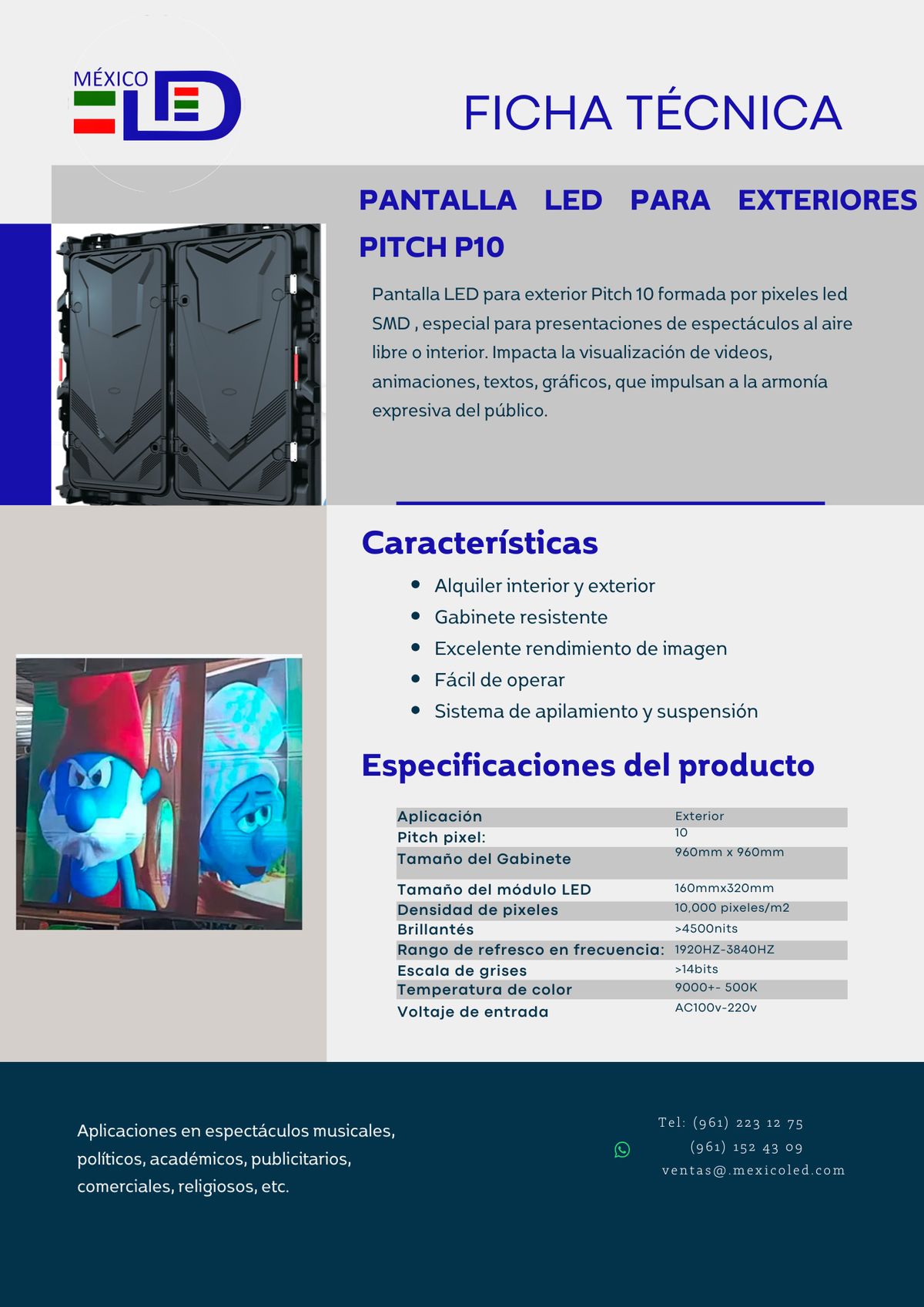 Alta definición para eventos y publicidad de corta distancia. Excelente brillo y contraste.