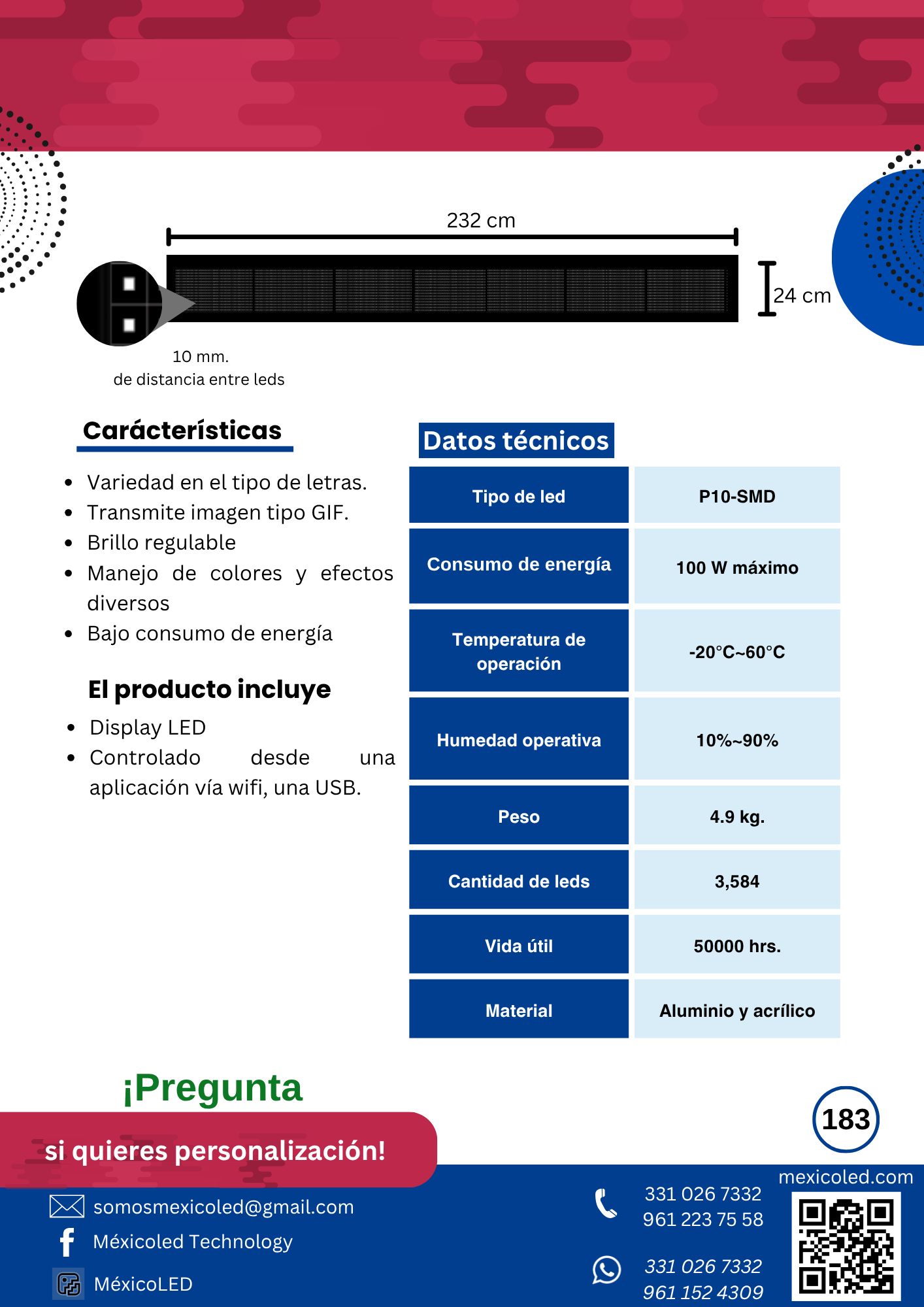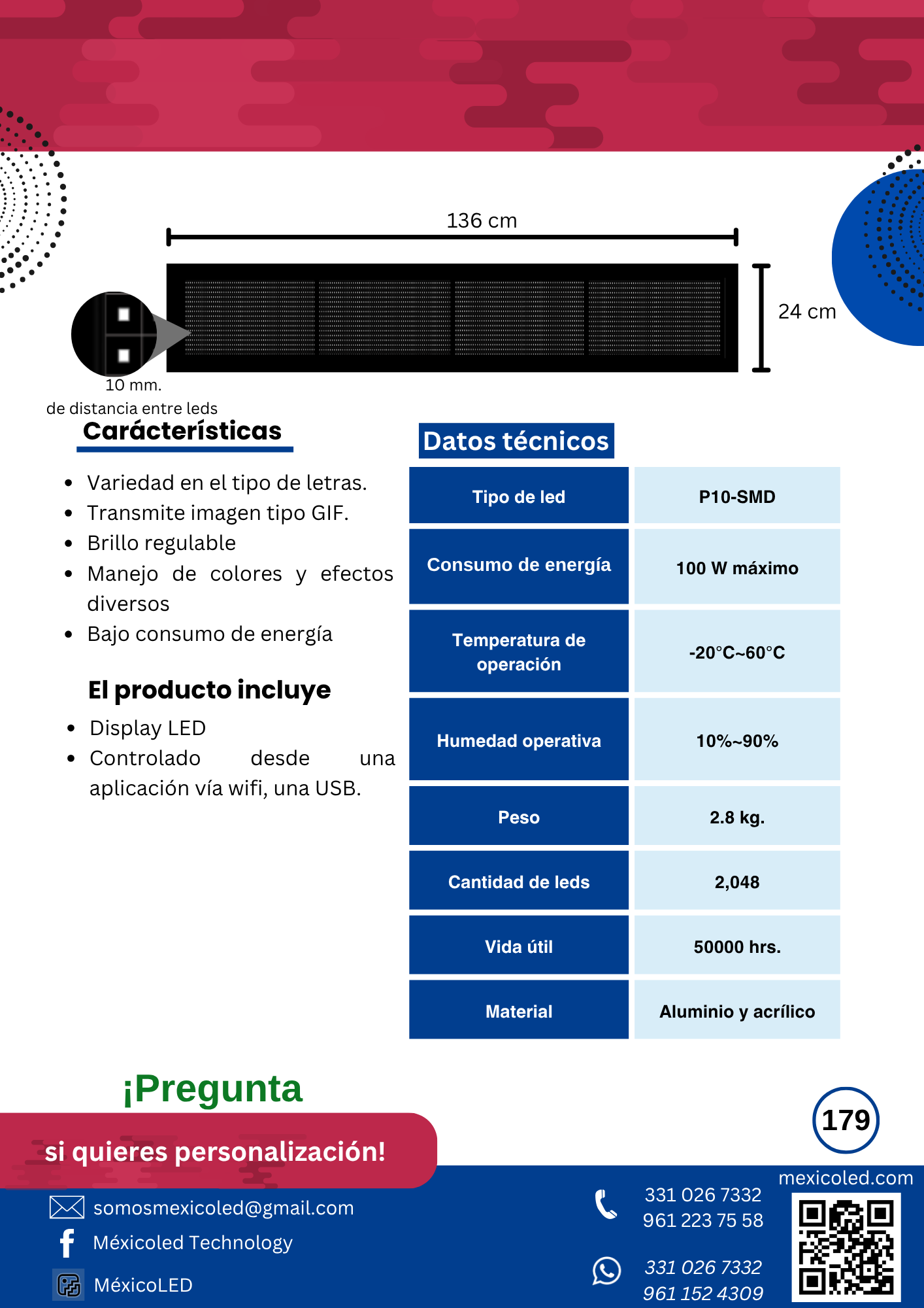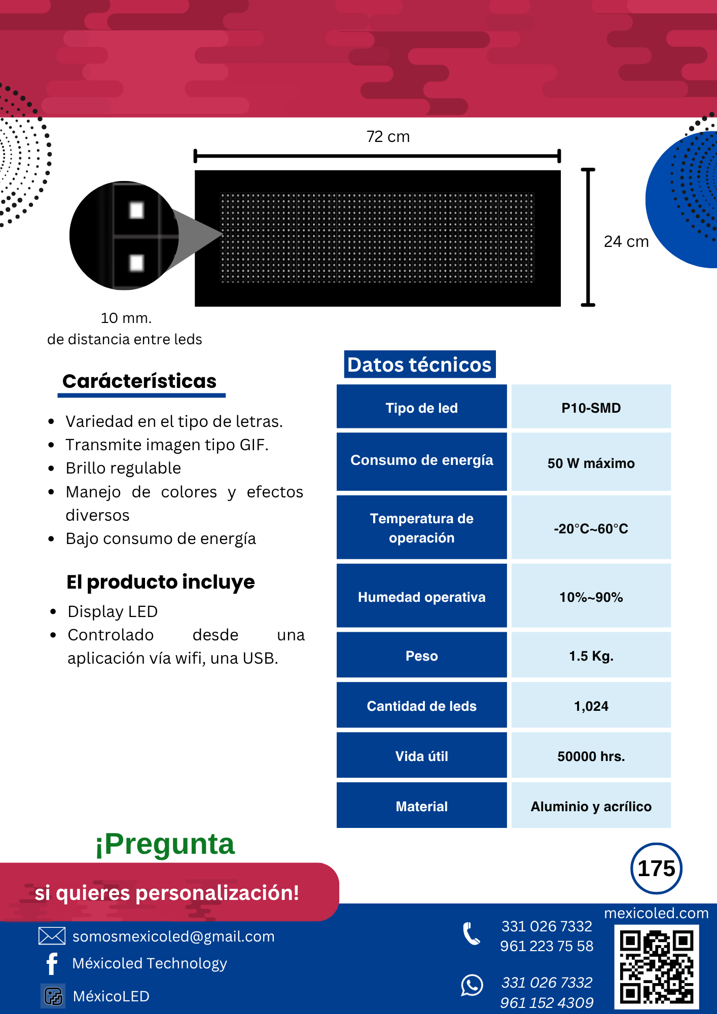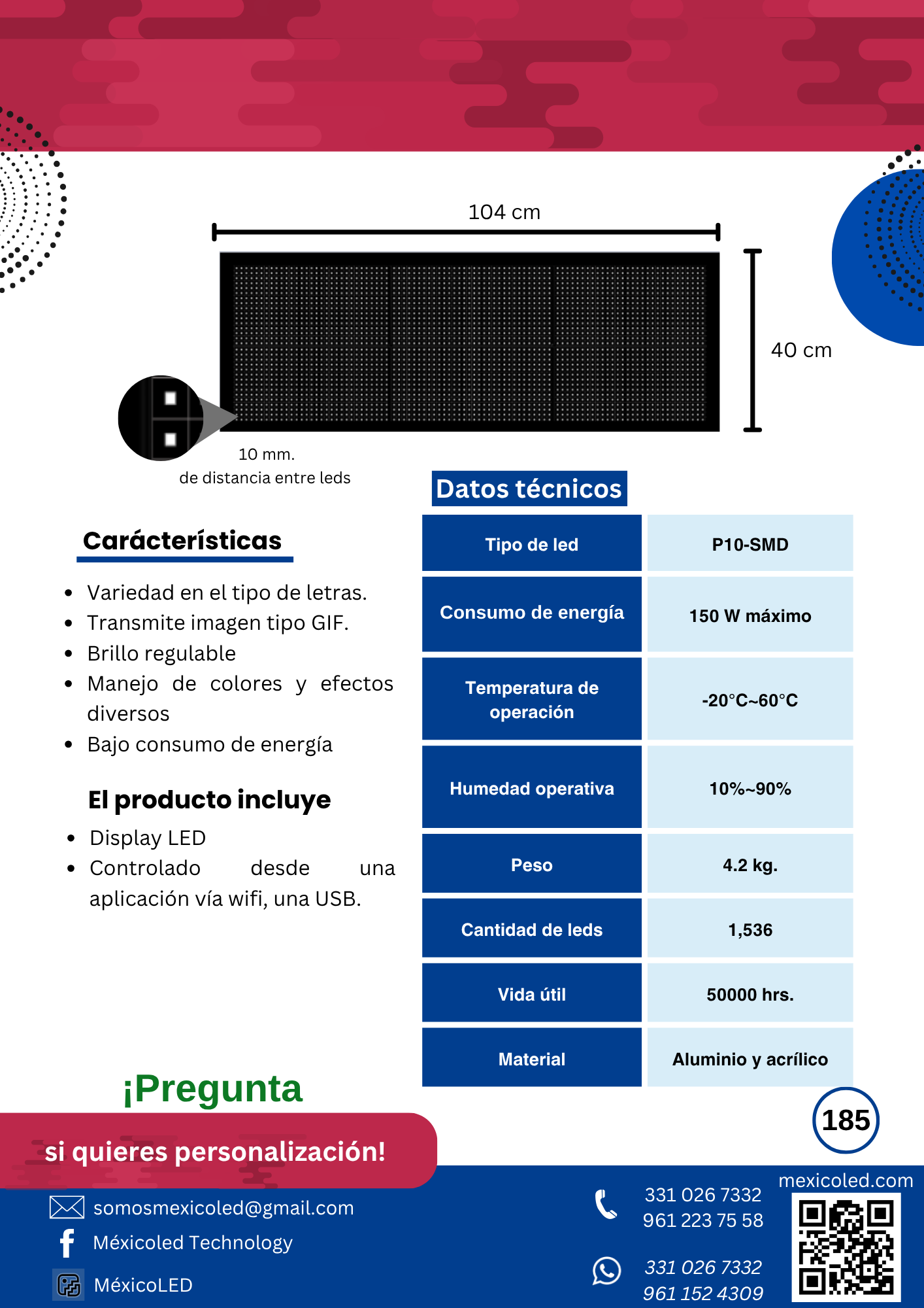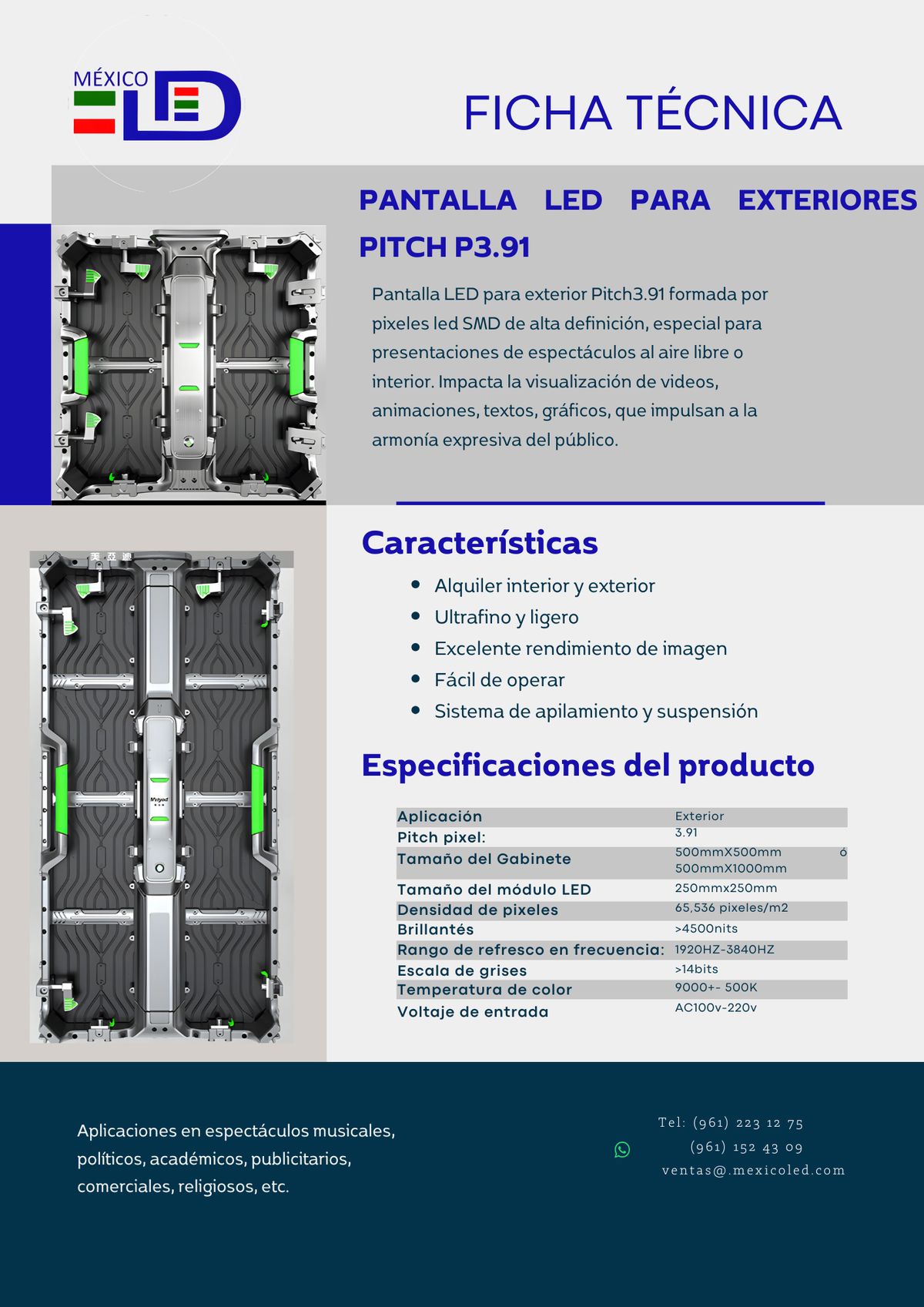 Alta definición para eventos y publicidad de corta distancia. Excelente brillo y contraste.